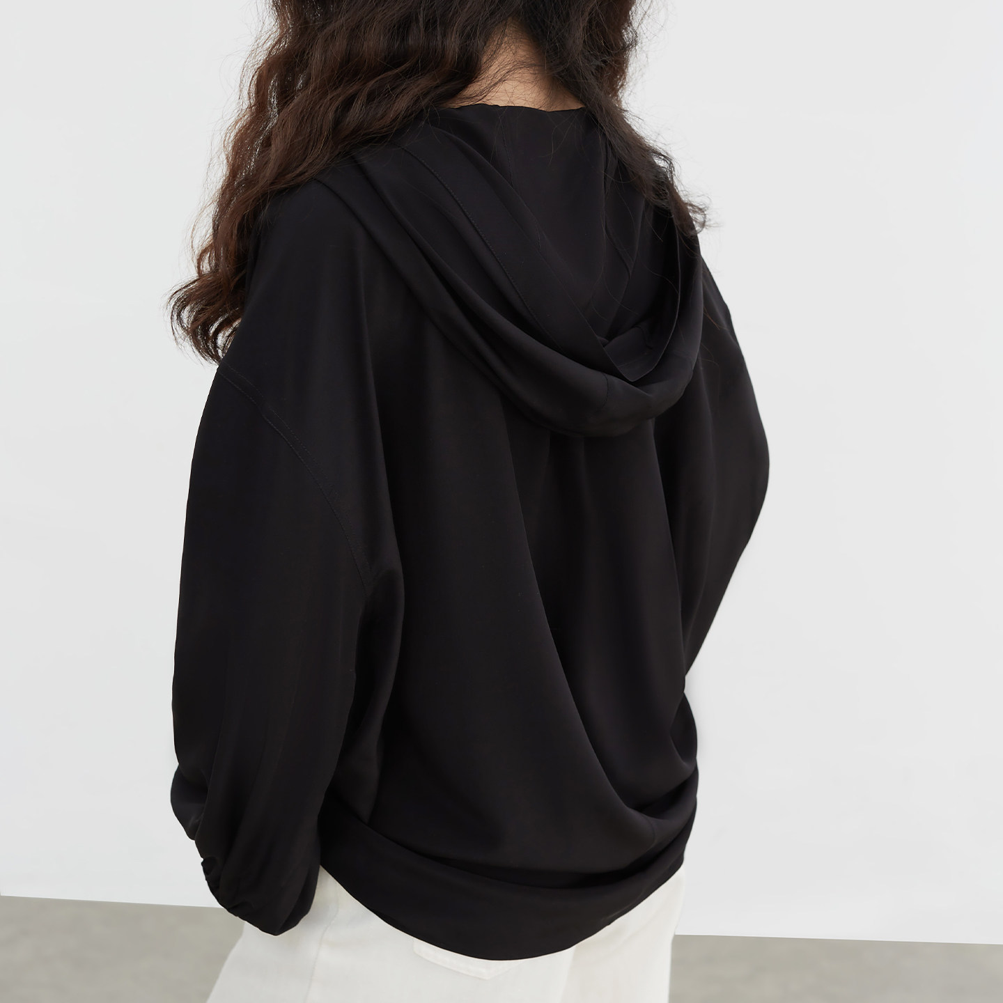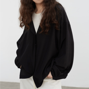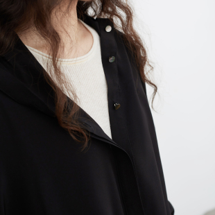 外套黑 上衣龟背开衫 连帽高智感100%真丝桑蚕丝拼接衬衫 女春夏长袖