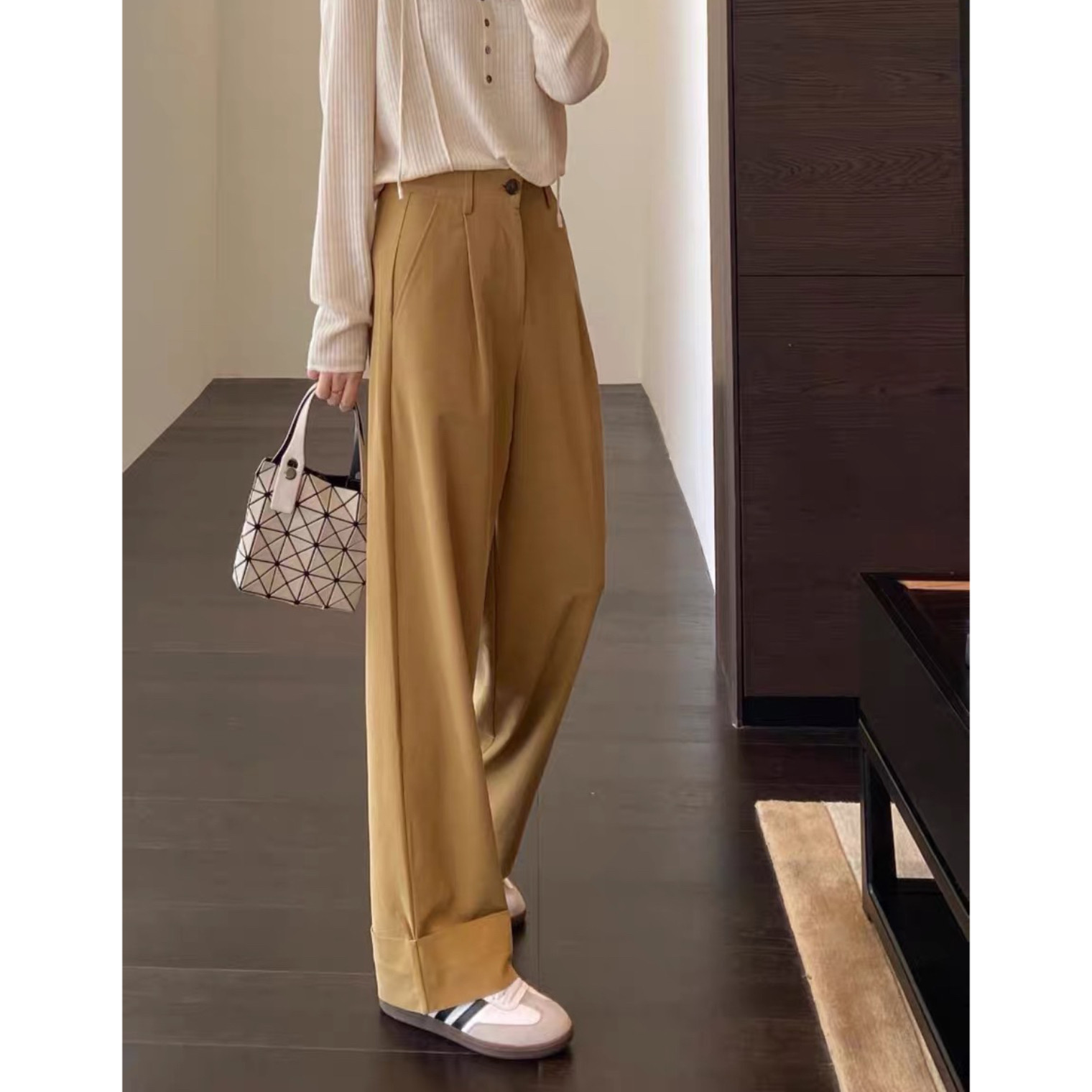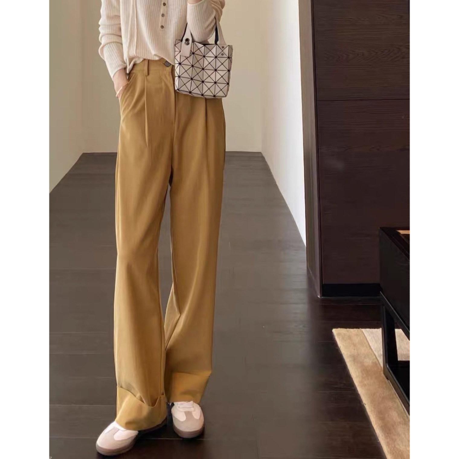 女休闲长裤 福利款 阔腿裤 秋新 ~量少~大长腿翻边直筒裤 AMR