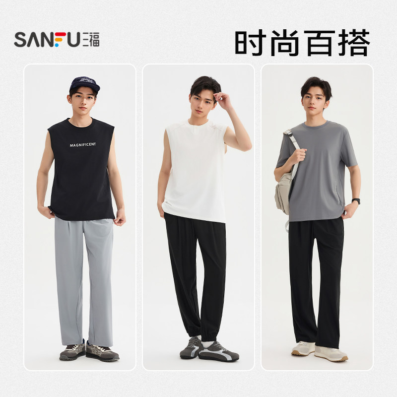 裤 三福2026夏季 男垂感速干防晒凉感直筒宽松束脚长裤 休闲裤 子 新款