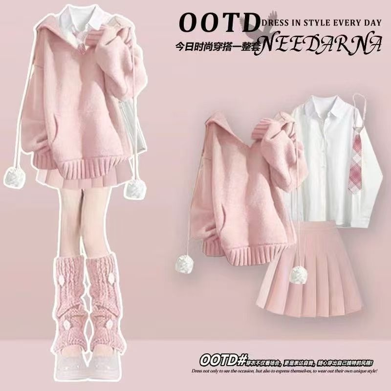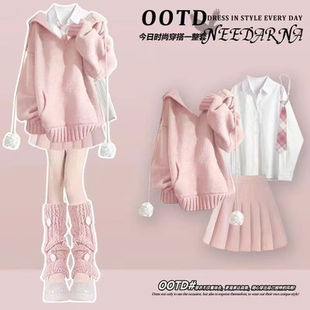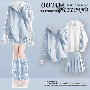 初中学生少女毛衣衬衫 套装 百褶裙三件套 春季 12到13一15岁大童女装