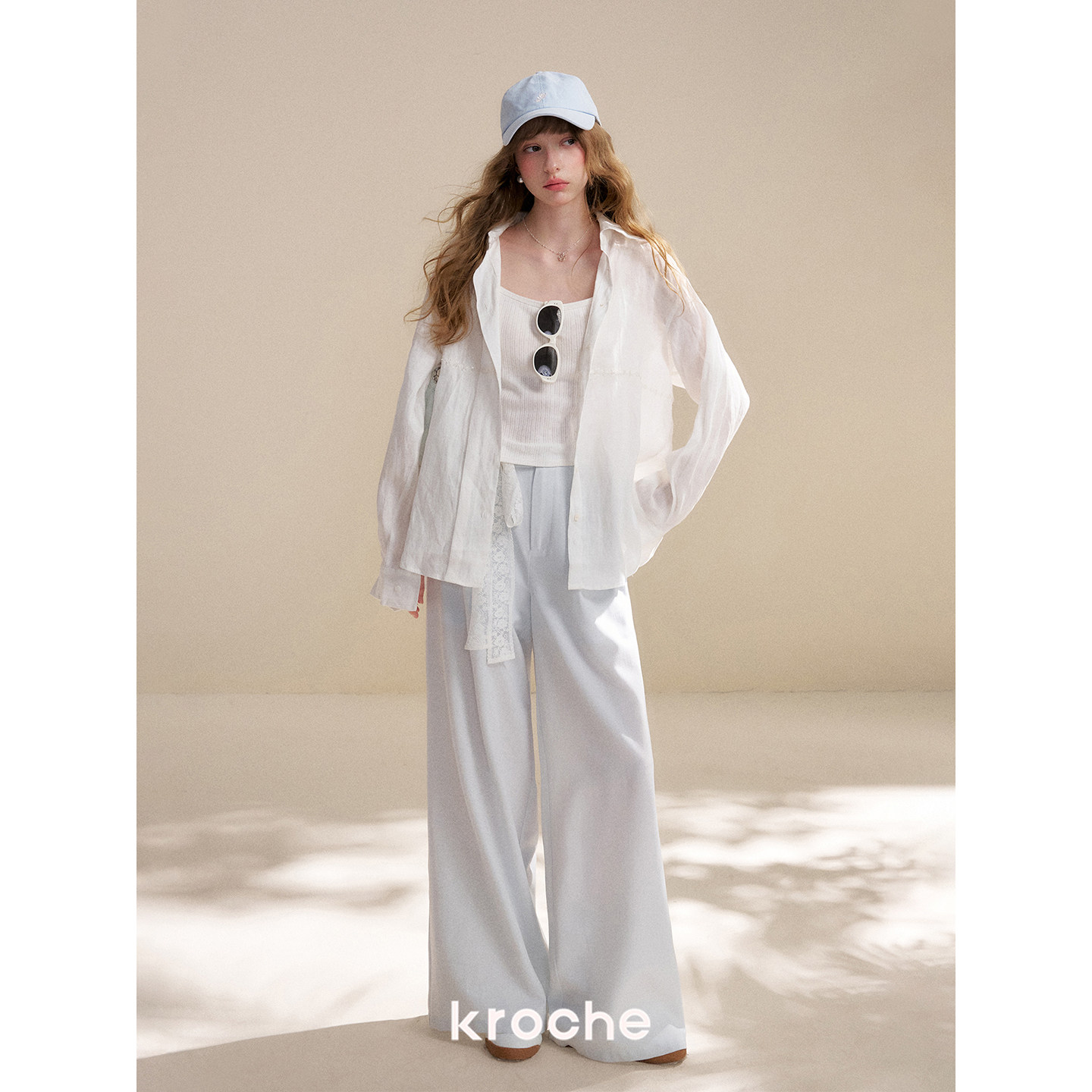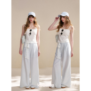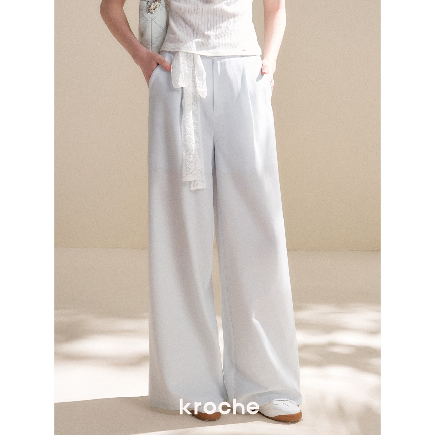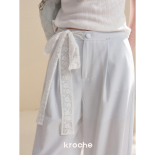 亚麻垂感腰头蕾丝绑带双压褶阔腿休闲长裤 浪漫蕾丝 26ss Kroche