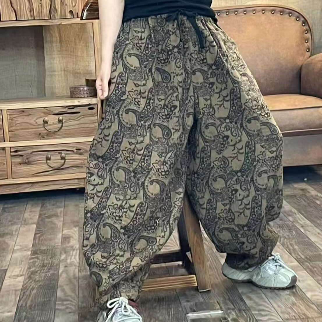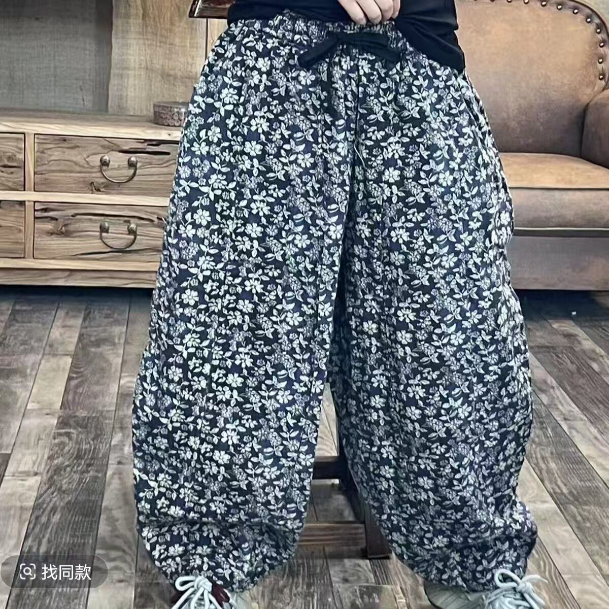 子 花色休闲百搭文艺做旧棉麻女士裤 新品 臀围140长90 春季