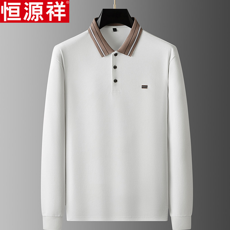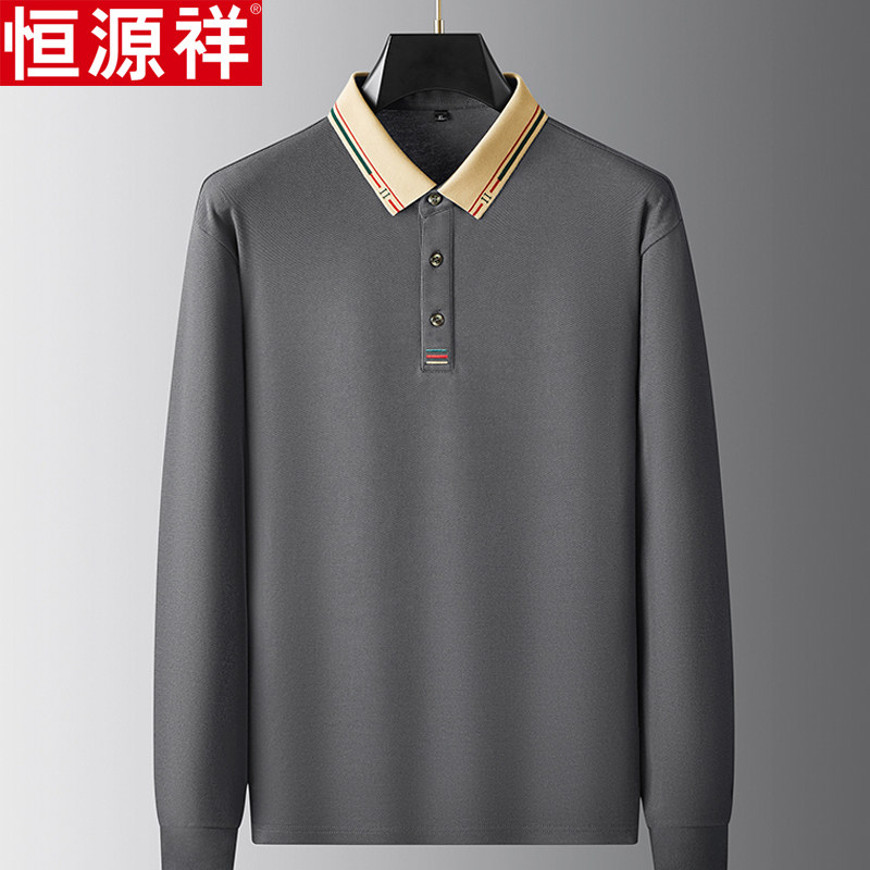 肥佬翻领体恤POLO衫 中年加肥加大特大码 t恤男士 恒源祥桑蚕丝长袖