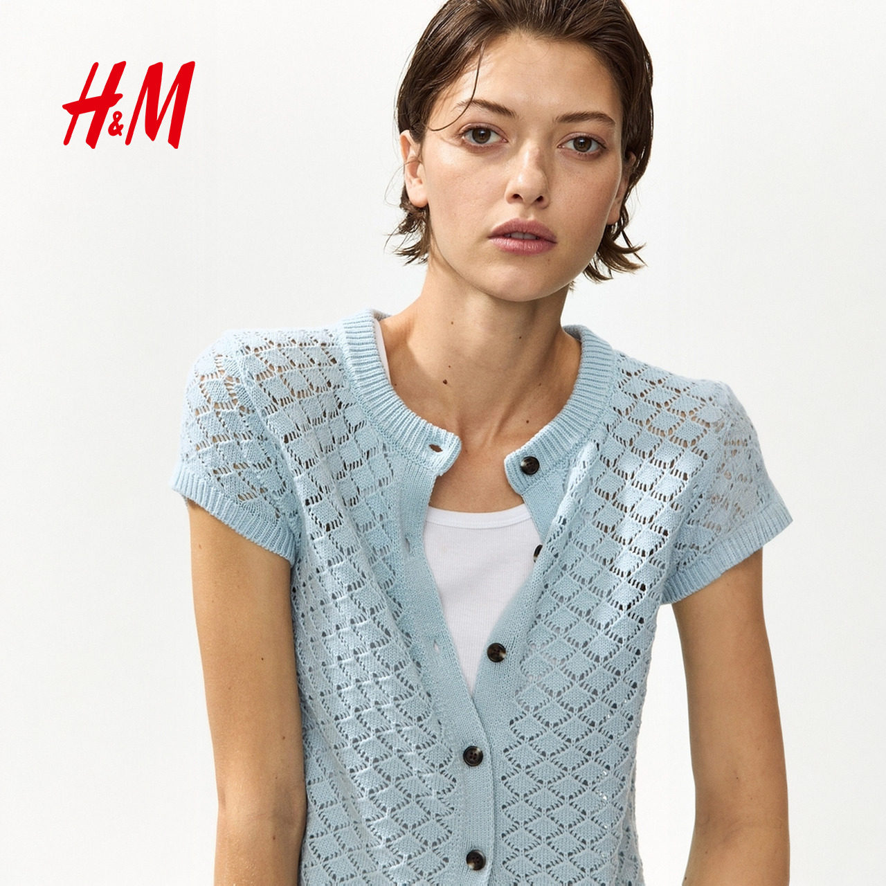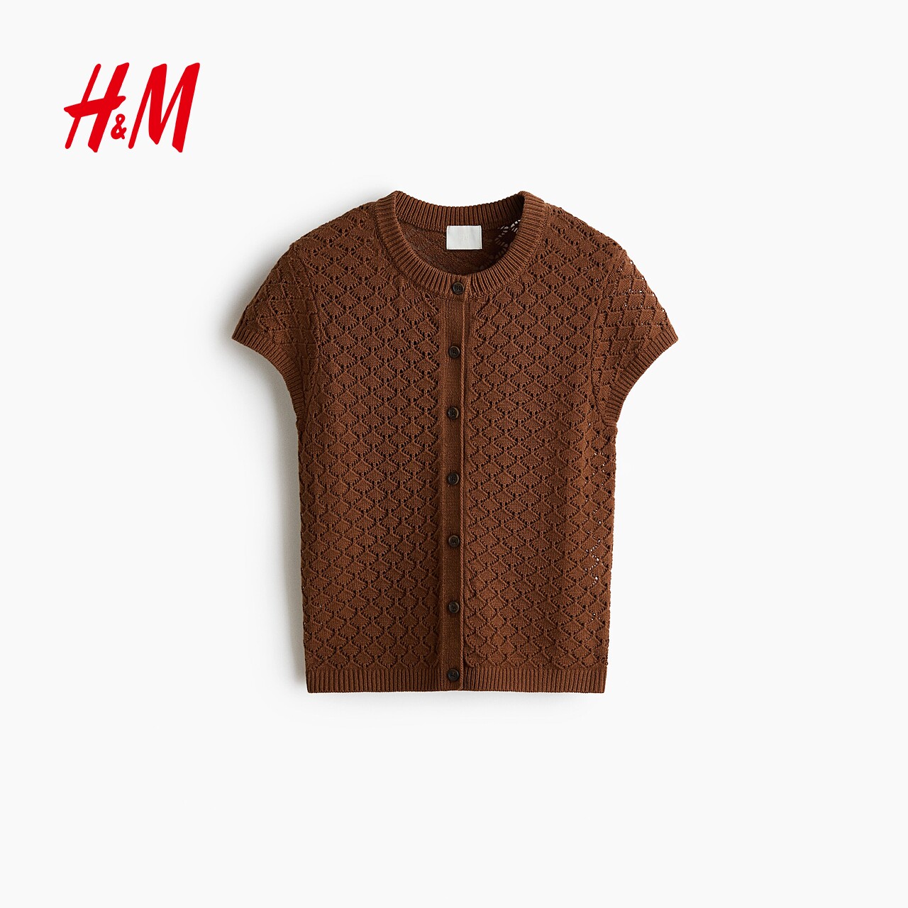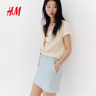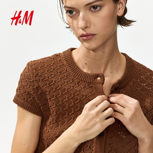 新款 盖袖 网眼针织开衫 HM女装 罩衫 2026春季 镂空短袖 1332156 针织衫
