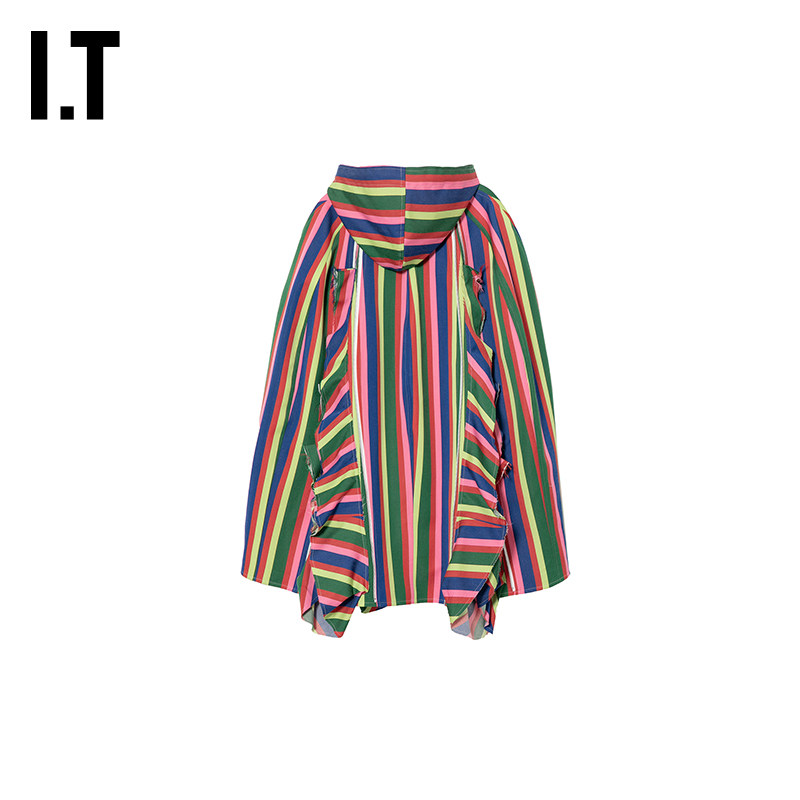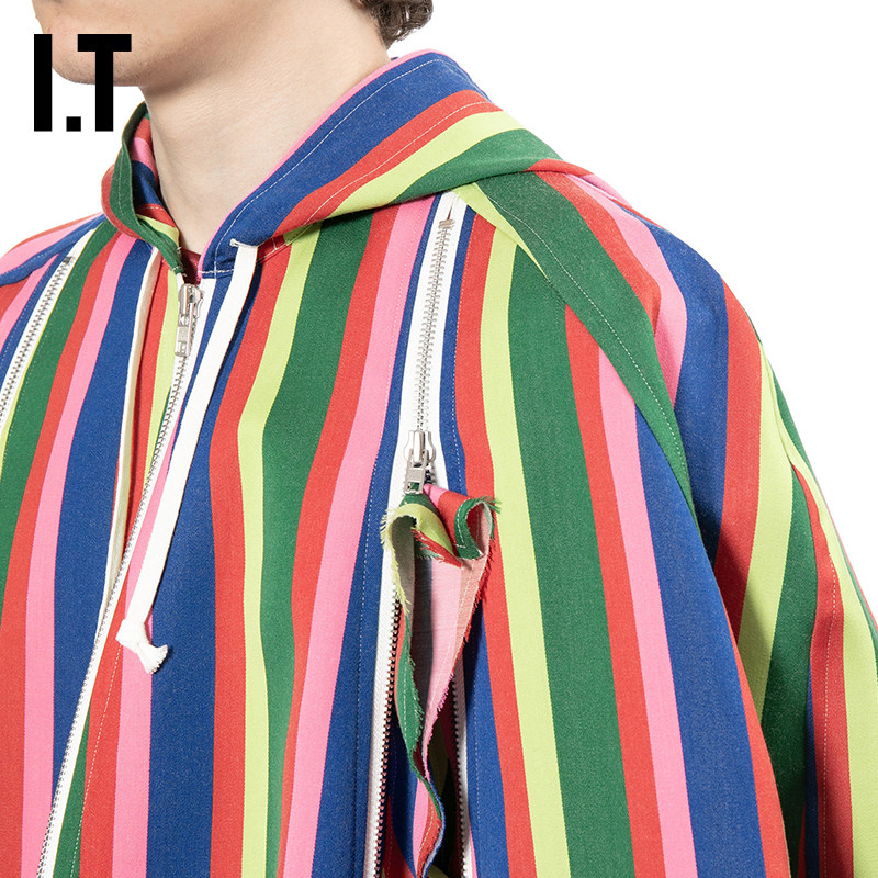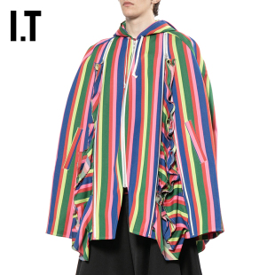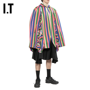 des COMME GARCONS HOMME 条纹连帽拉链大衣 PLUS男斗篷式 CDG