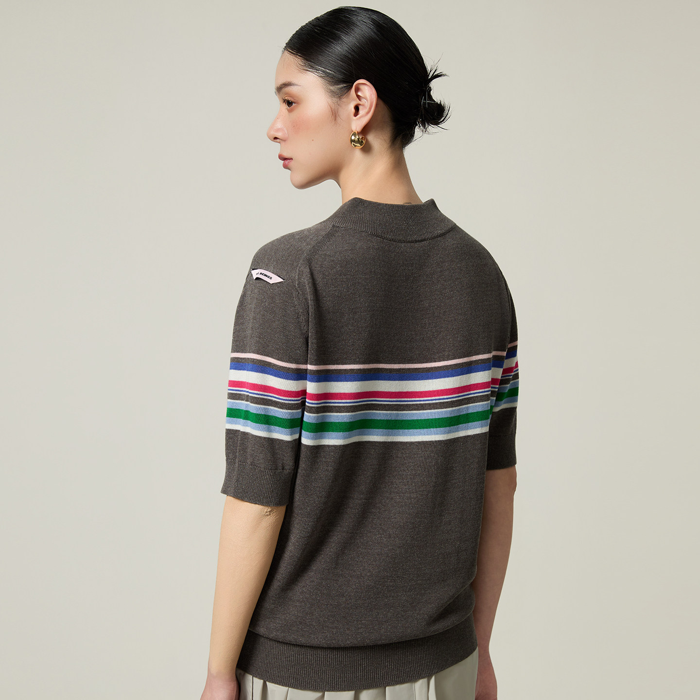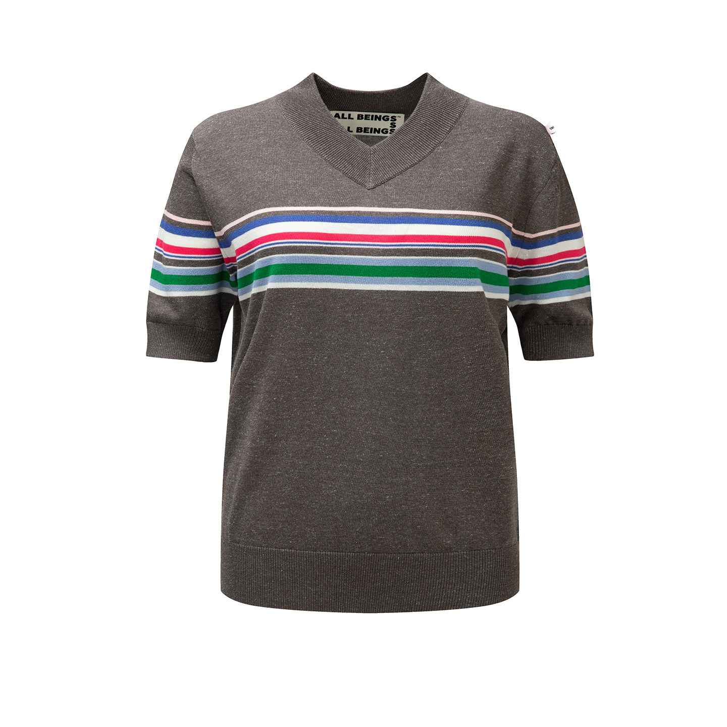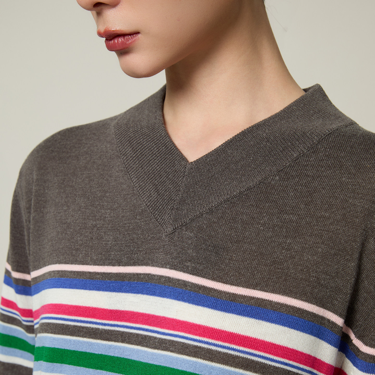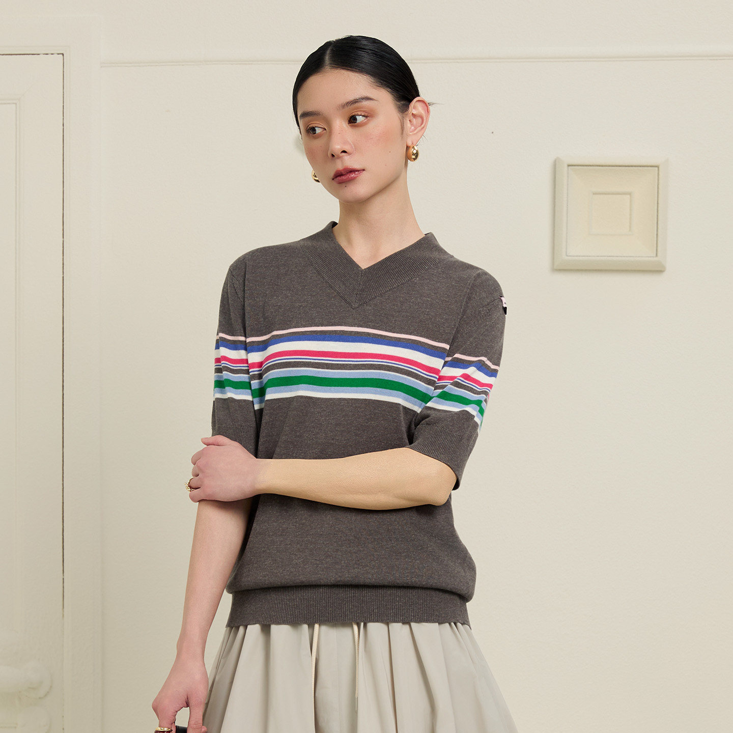 套头针织衫 ALL 撞色彩条纹轻薄V领短袖 新款 T恤女 BEINGS26SS夏季