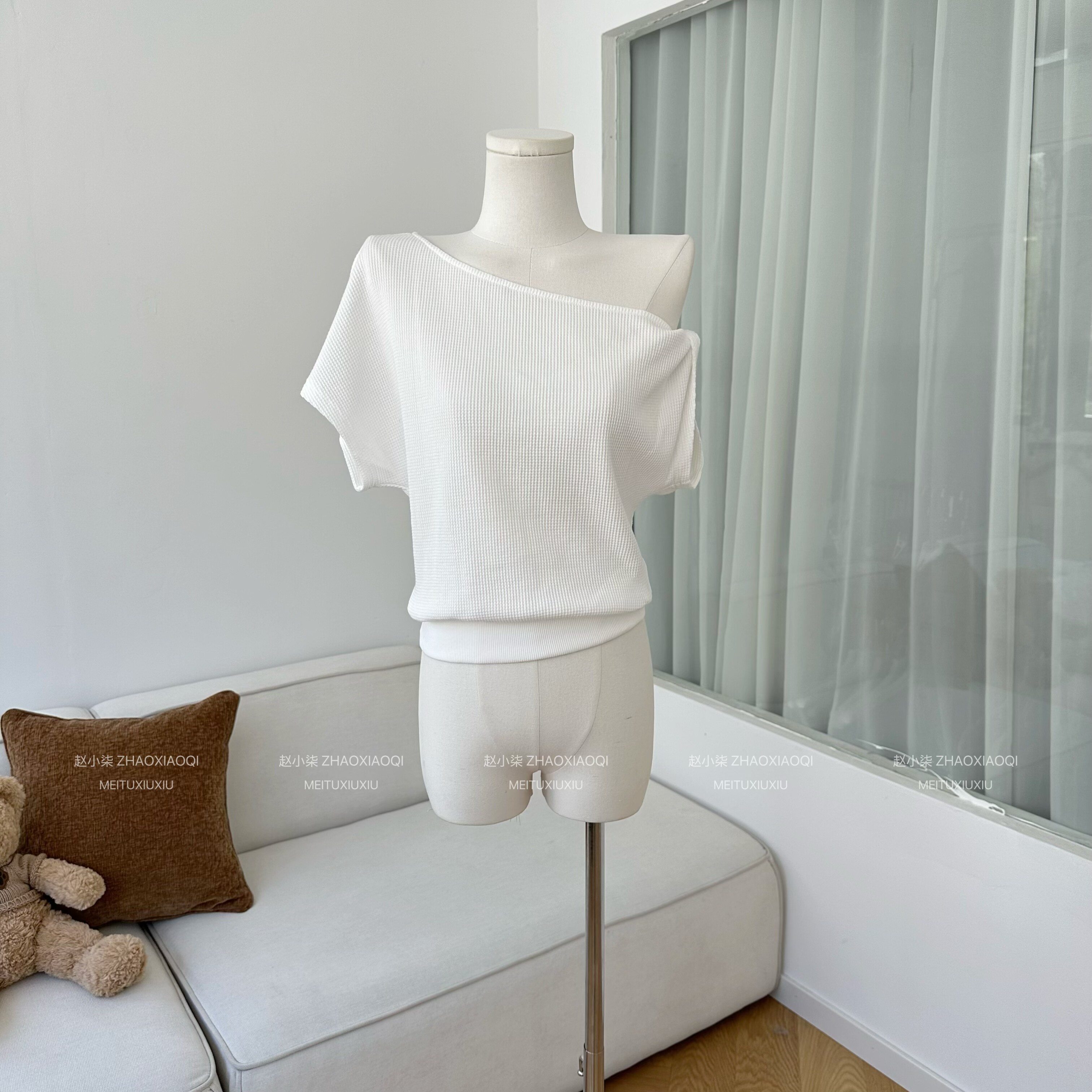 套装 柒月末 T恤女宽松直筒休闲阔腿裤 斜领露肩短袖 夏 私服日常