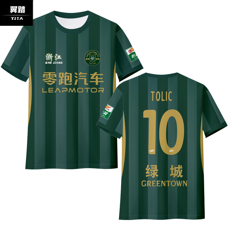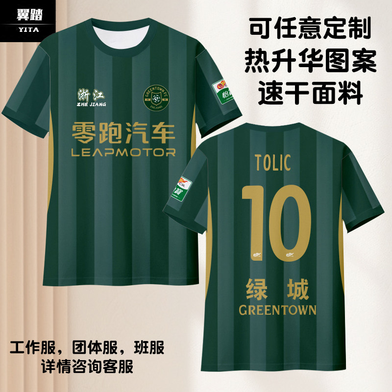 男女半袖 T恤衫 体 足球衣服速干短袖 2026浙江俱乐部绿城队服球员版