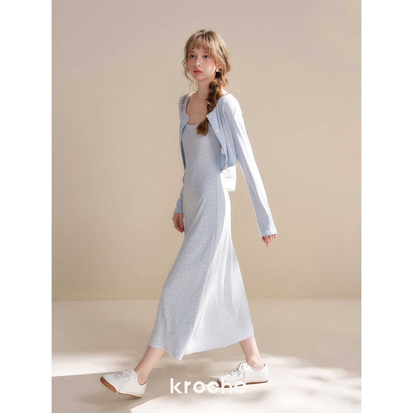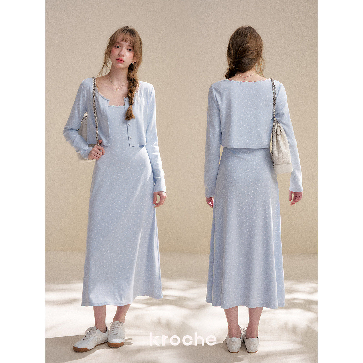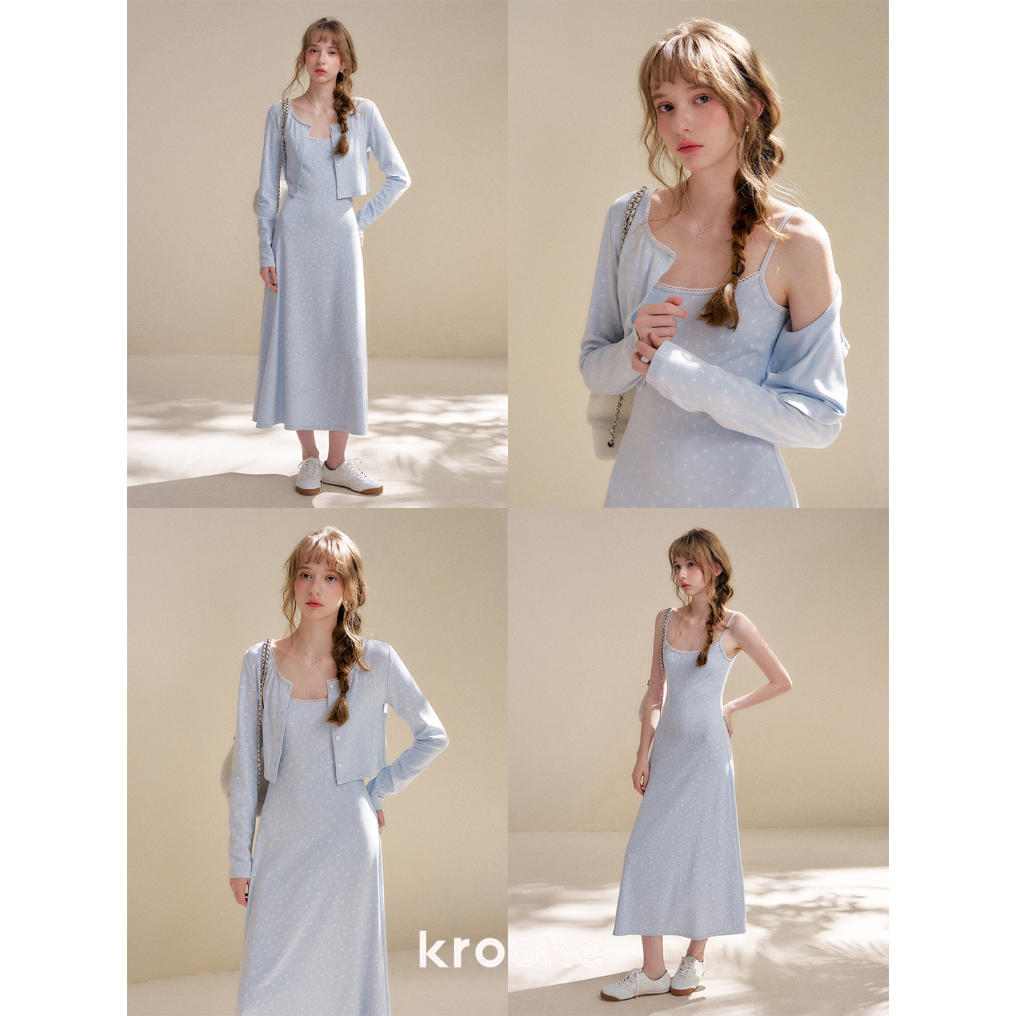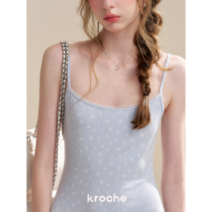 A字吊带连衣裙套装 Kroche 波浪花边拼接针织开衫 奶油玫瑰 26ss