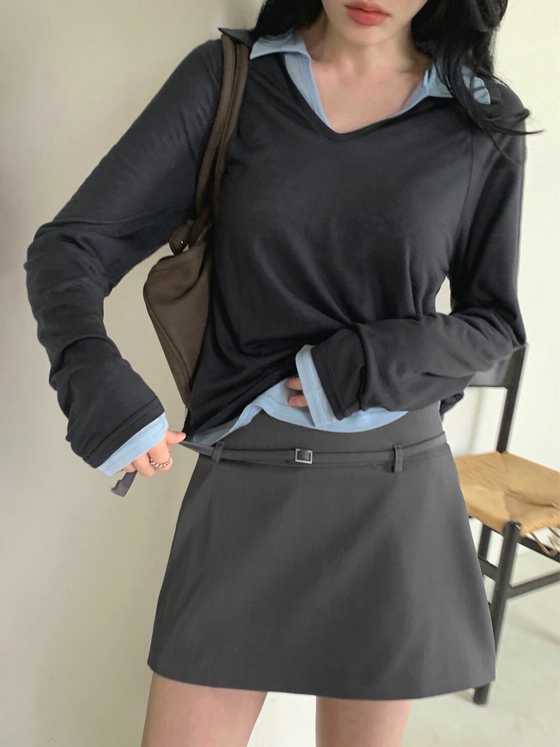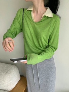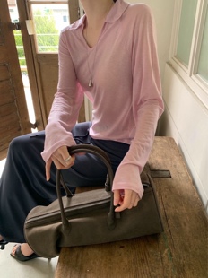 长袖 直邮 养眼亲肤天丝棉小翻领宽松套头衫 26ss T恤 首尔印象韩代