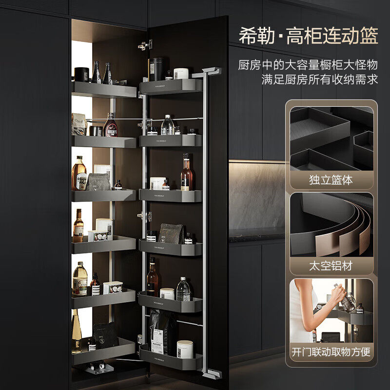 悍高希勒高柜联动拉篮大怪物零食收纳柜多层开门式 调料篮厨房橱柜