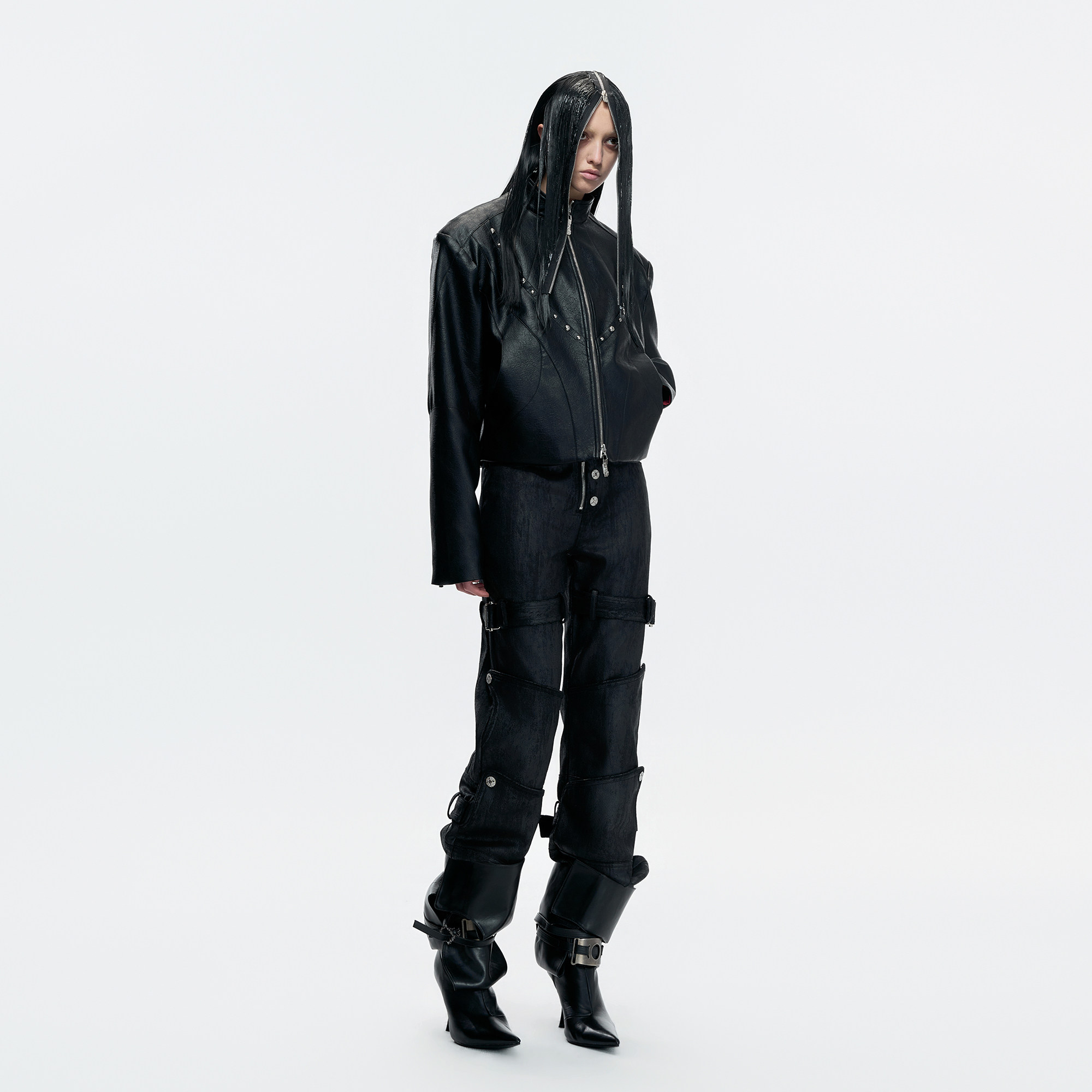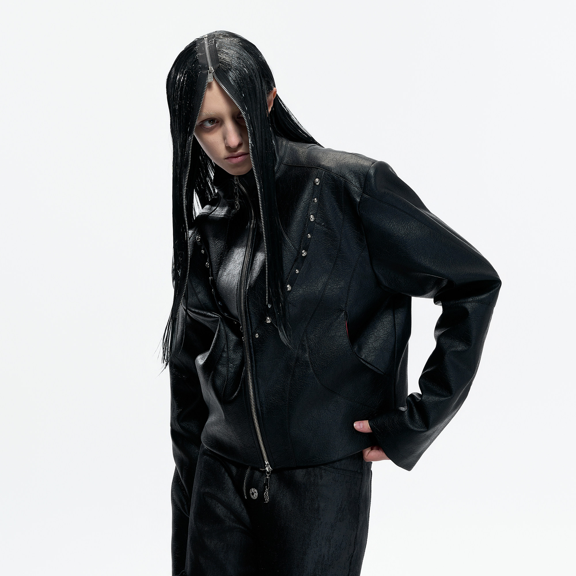 双拉链设计外套 重磅哑光油蜡铆钉夹克短款 ArguE CulturE凛夜黑序