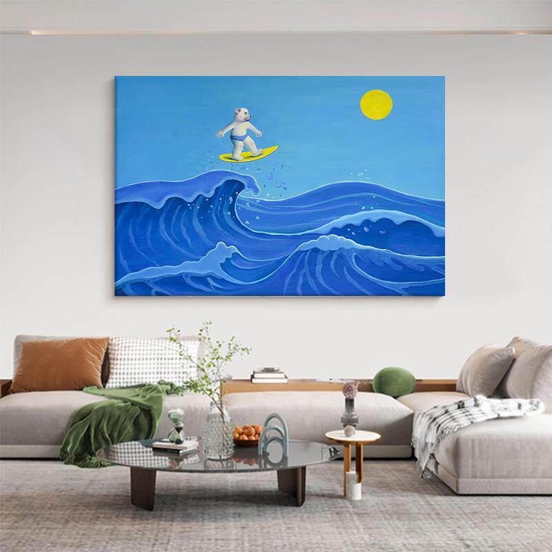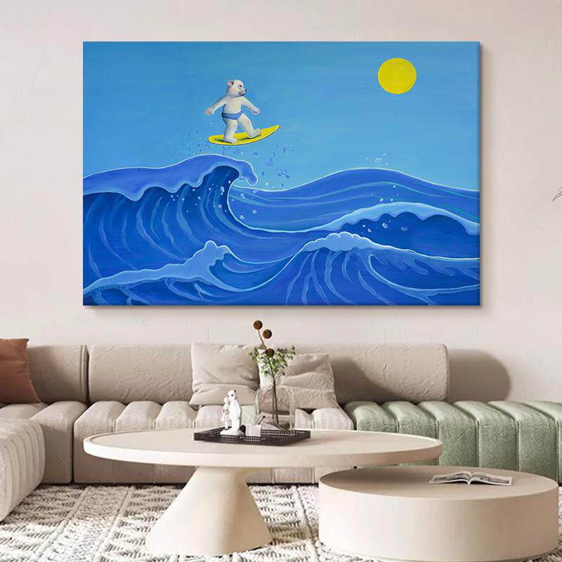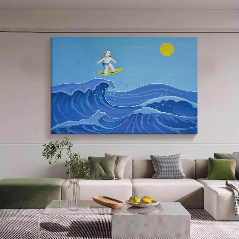 儿童房卧室床头治愈系横版 饰壁画 挂画小众艺术客厅手绘油画玄关装