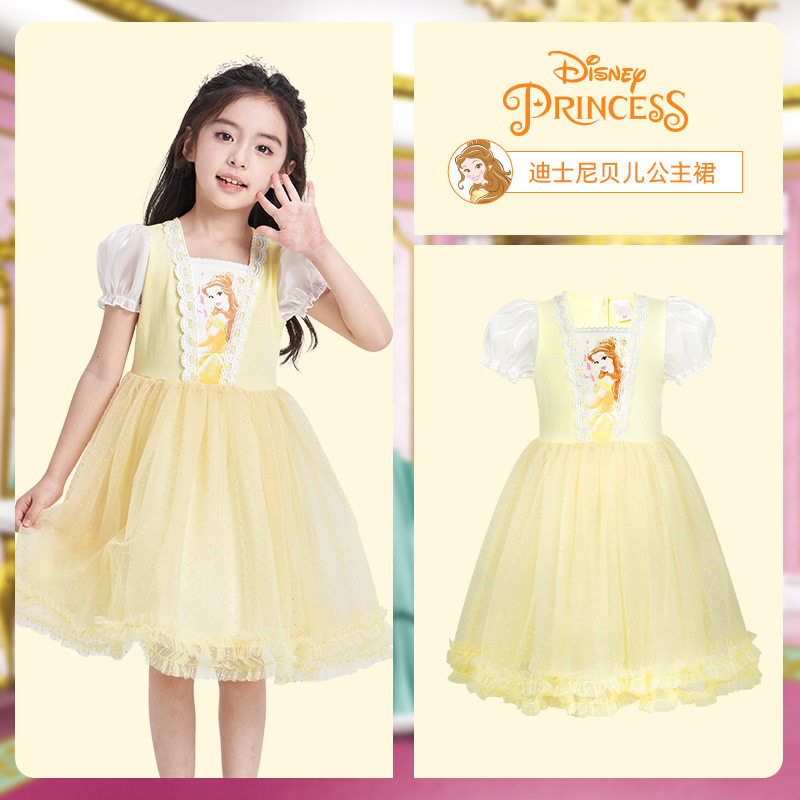 迪士尼儿童节新款 小精灵仙女贝儿生日连衣裙儿童长发公主裙表演服