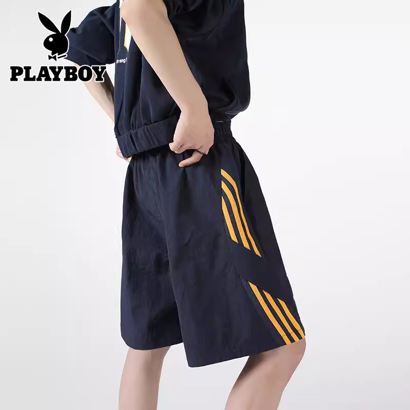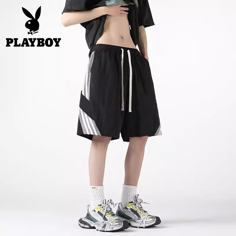 三条杠直筒宽松休闲五分裤 花花公子速干运动短裤 美式 薄款 子 男夏季