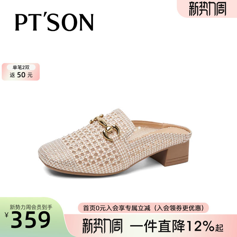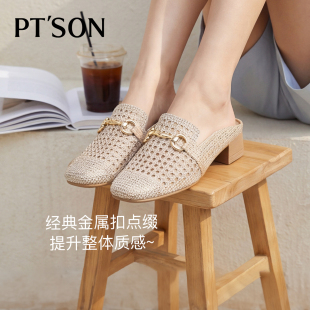 慵懒包头拖鞋 百田森商场同款 一脚蹬英伦风高跟拖鞋 女春季 夏 穆勒鞋