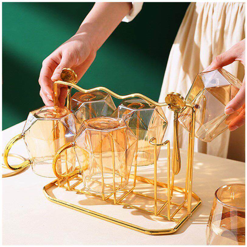 小鸟杯架金色黑色沥水架欧式 陶瓷咖啡杯具收纳篮铁艺架电镀金