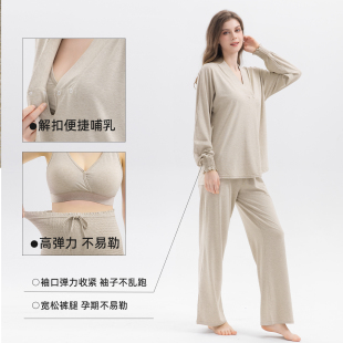 歌美姿月子服孕妇天竹睡衣待产哺乳产妇家居套装 产后弹力 喂奶薄款