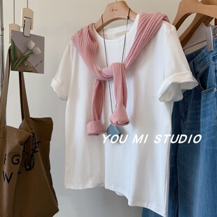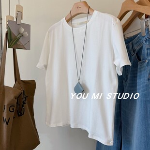 叠穿打底短袖 人手2件入 圆领宽松百搭薄款 小白t T恤女 显瘦光版