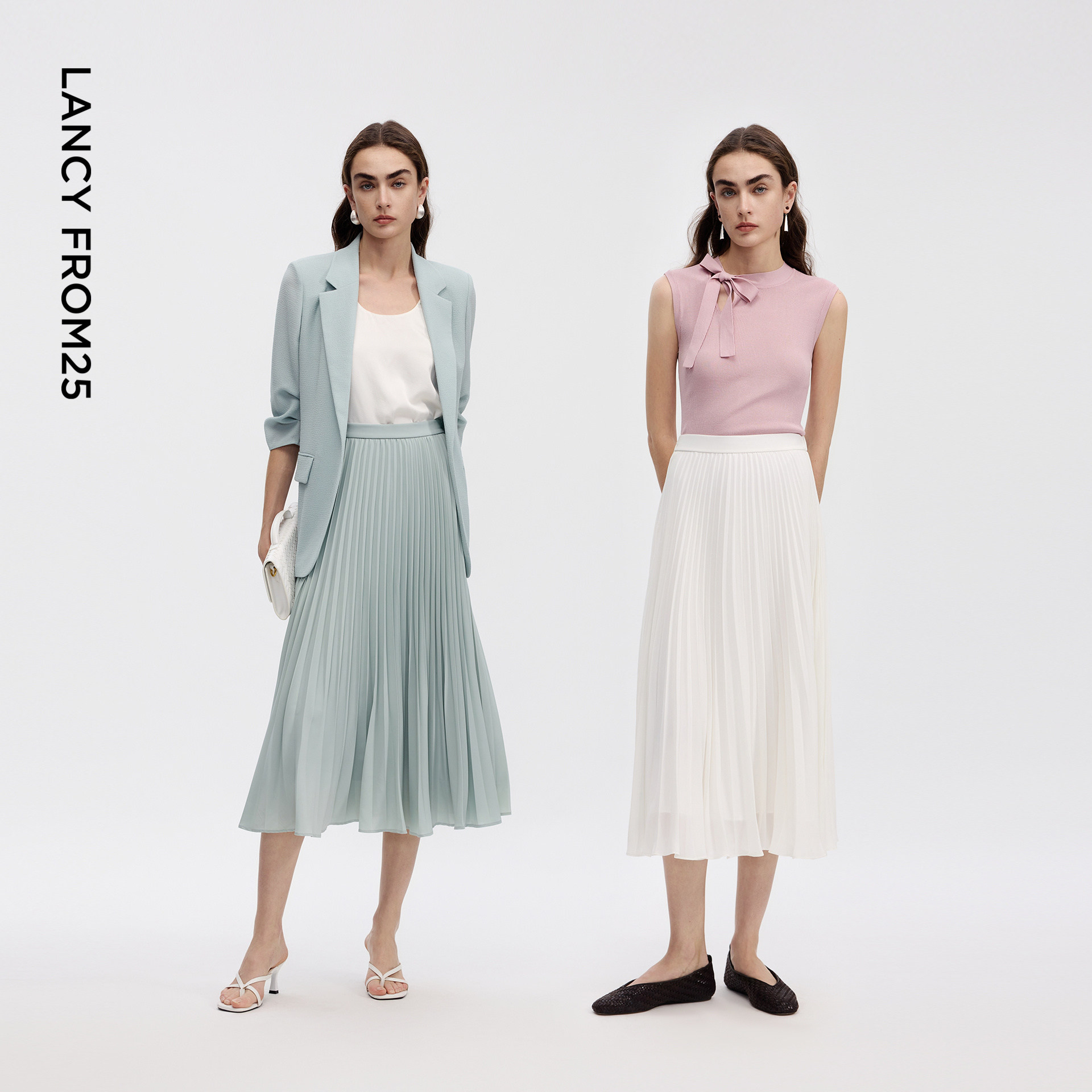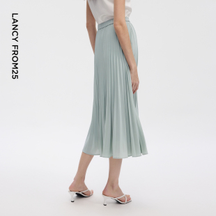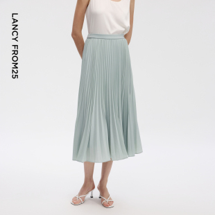 朗姿25飘逸感立体压褶优雅随性半身裙气质通勤裙子2026年夏季 新款