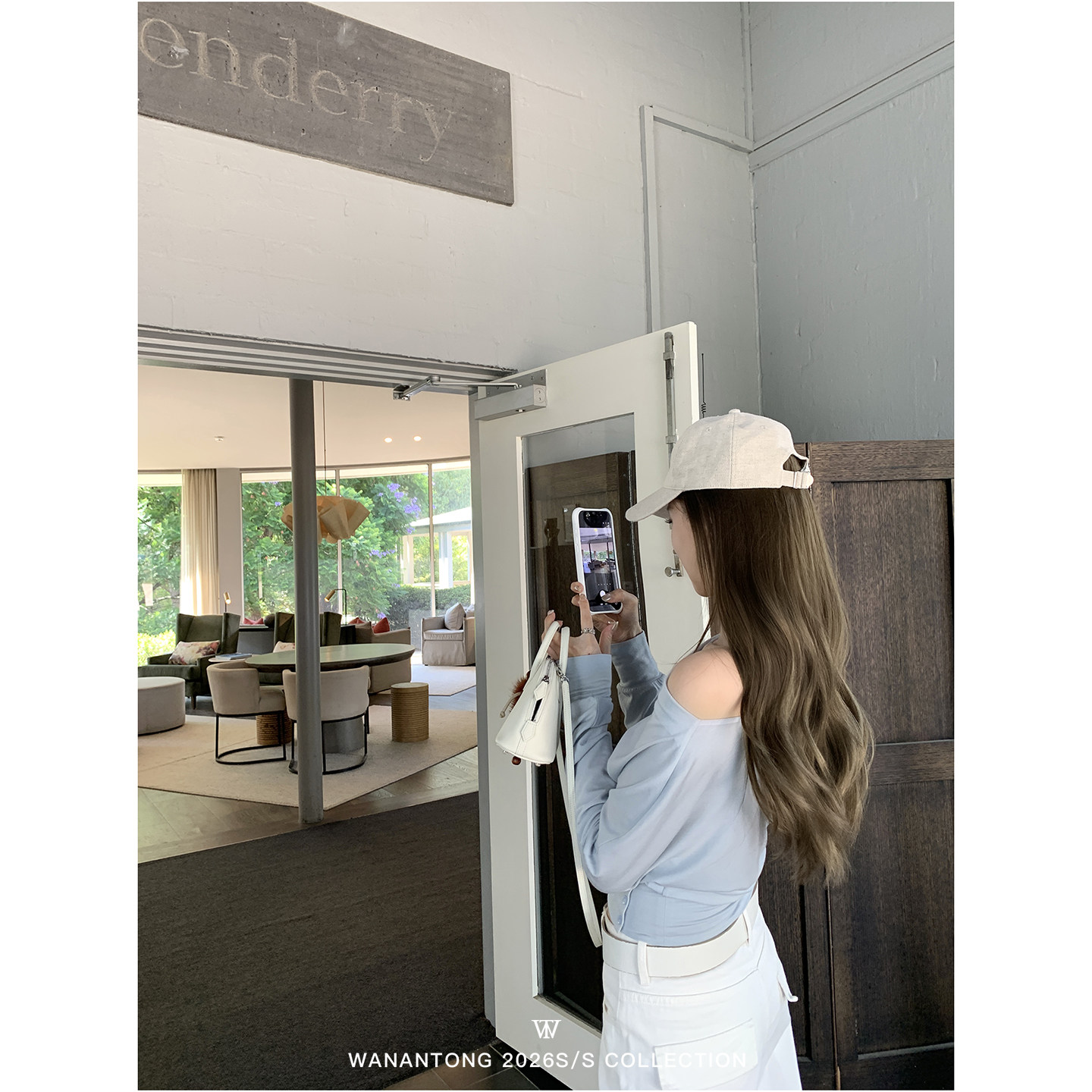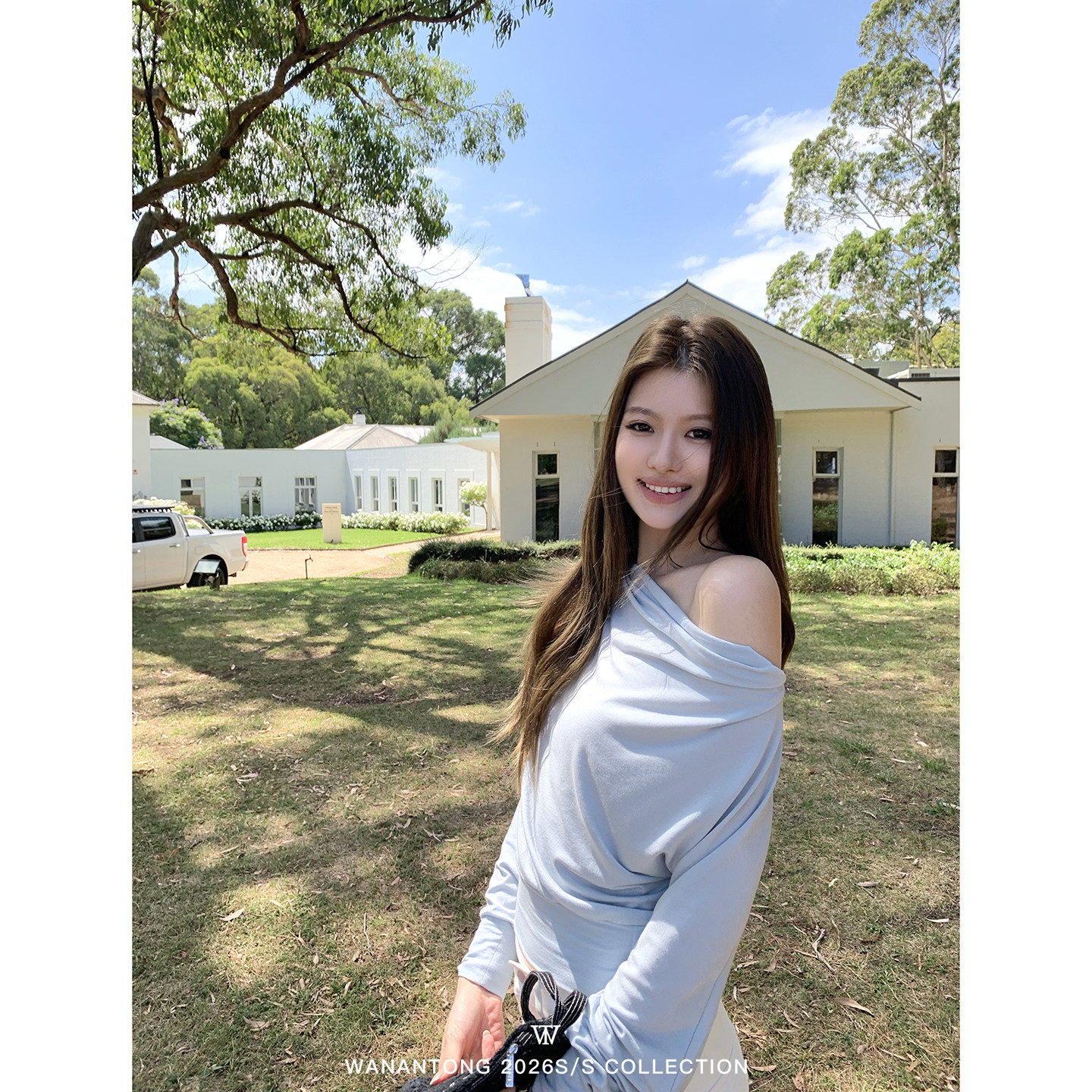 3ways多穿法天丝羊毛荡领上衣 海盐系姐感 WANANTONG