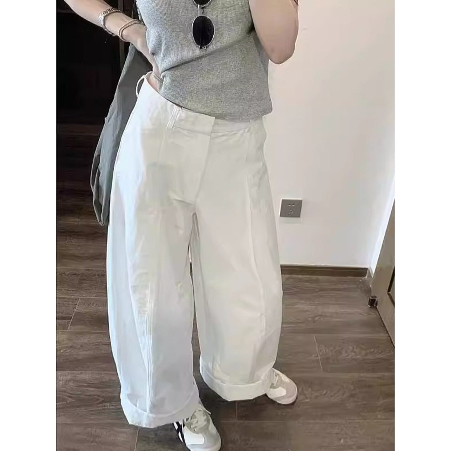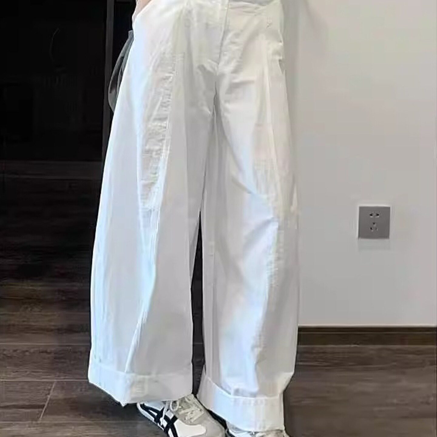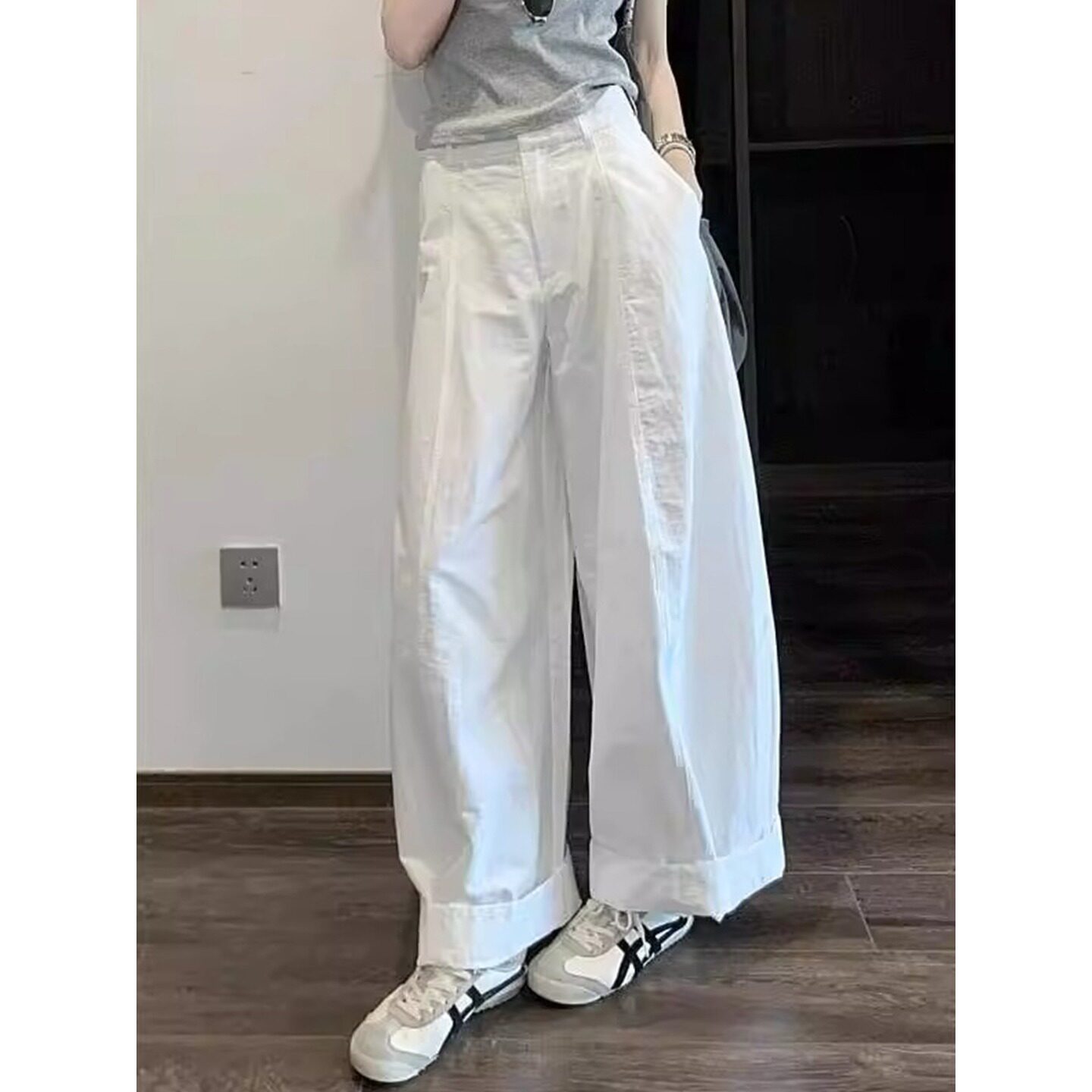 韩版 薄款 145小个子工装 直筒裤 子xxs 白色高腰阔腿裤 休闲长裤 女夏季