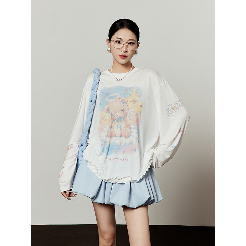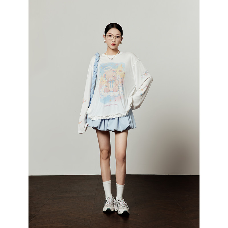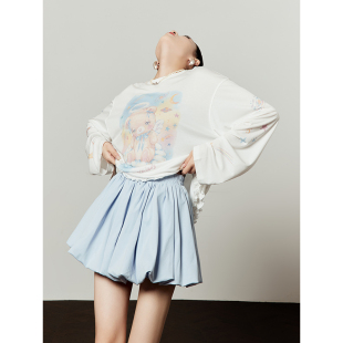 印花宽松上衣 时尚 周里物出品「云间星芒」白色T恤女2026春季 新款