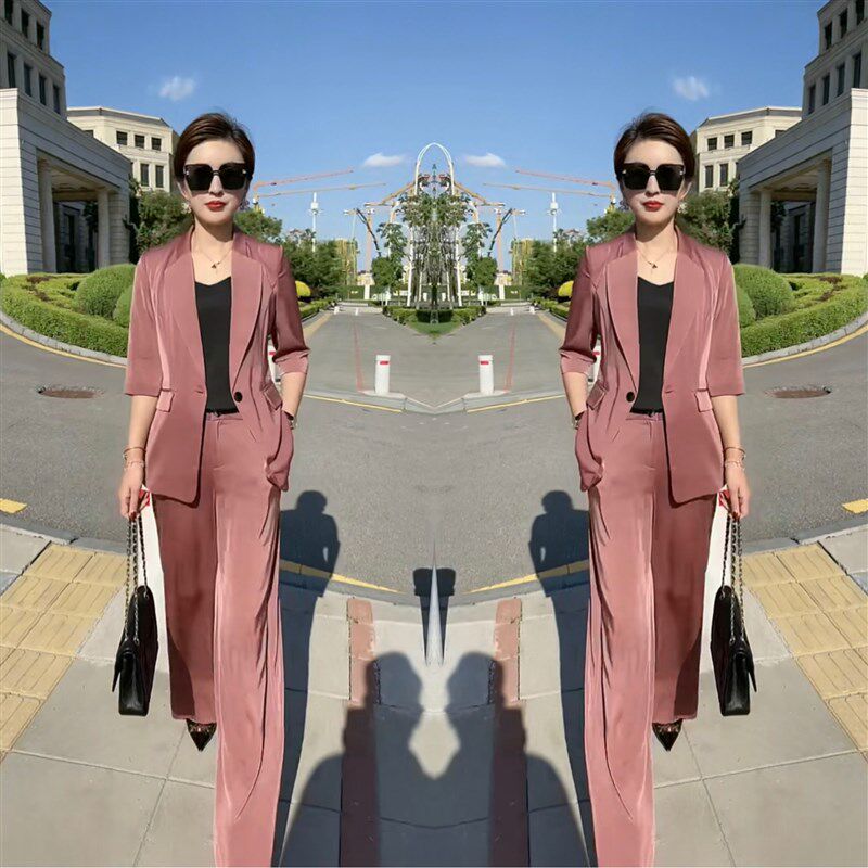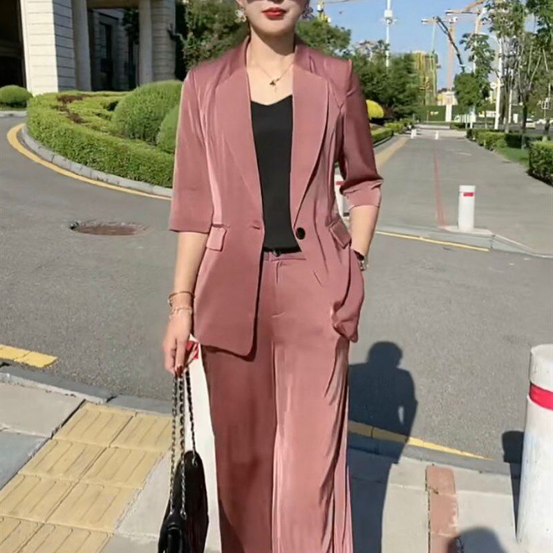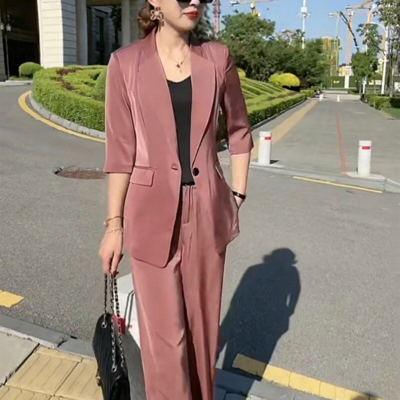气质修身 早秋款 显瘦五分袖 网红小西服套装 西服上衣直筒裤 2021秋季