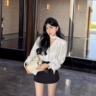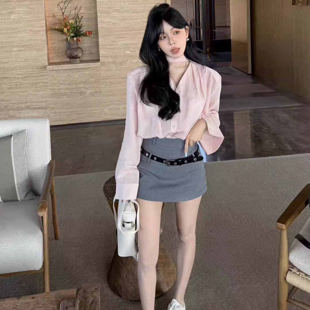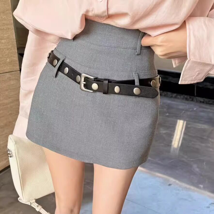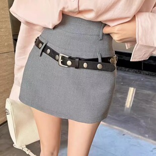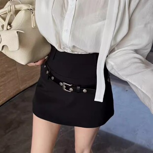 百搭高腰显瘦设计感纯色半身裙短裙配腰带 新款 ALA西装 裙2026春季