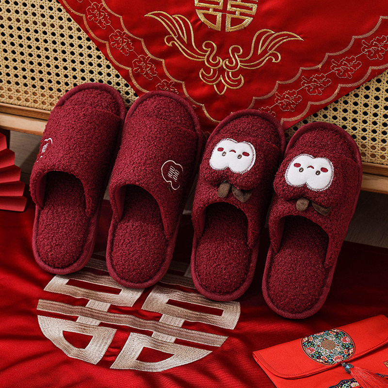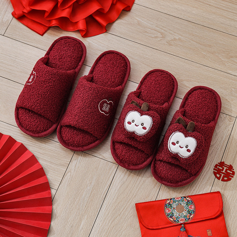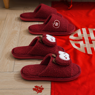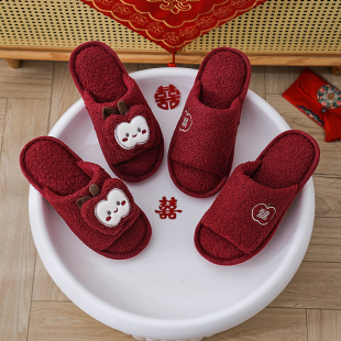 轻奢 喜庆家居新郎新娘婚礼陪嫁婚鞋 红色拖鞋 结婚一对新婚情侣夏季
