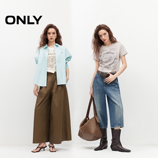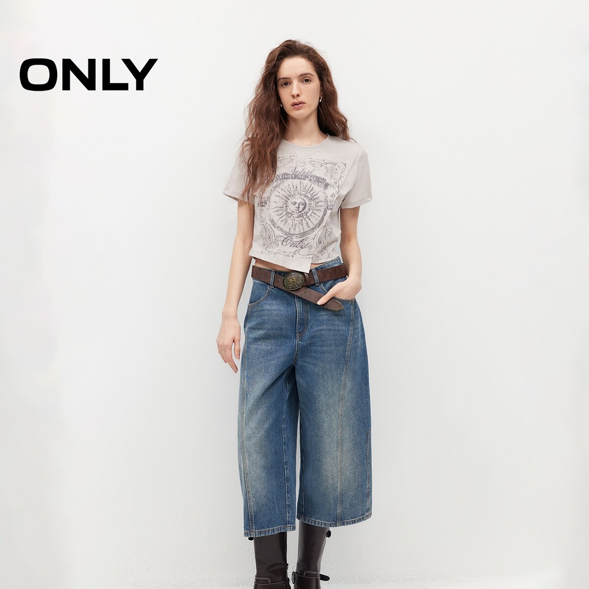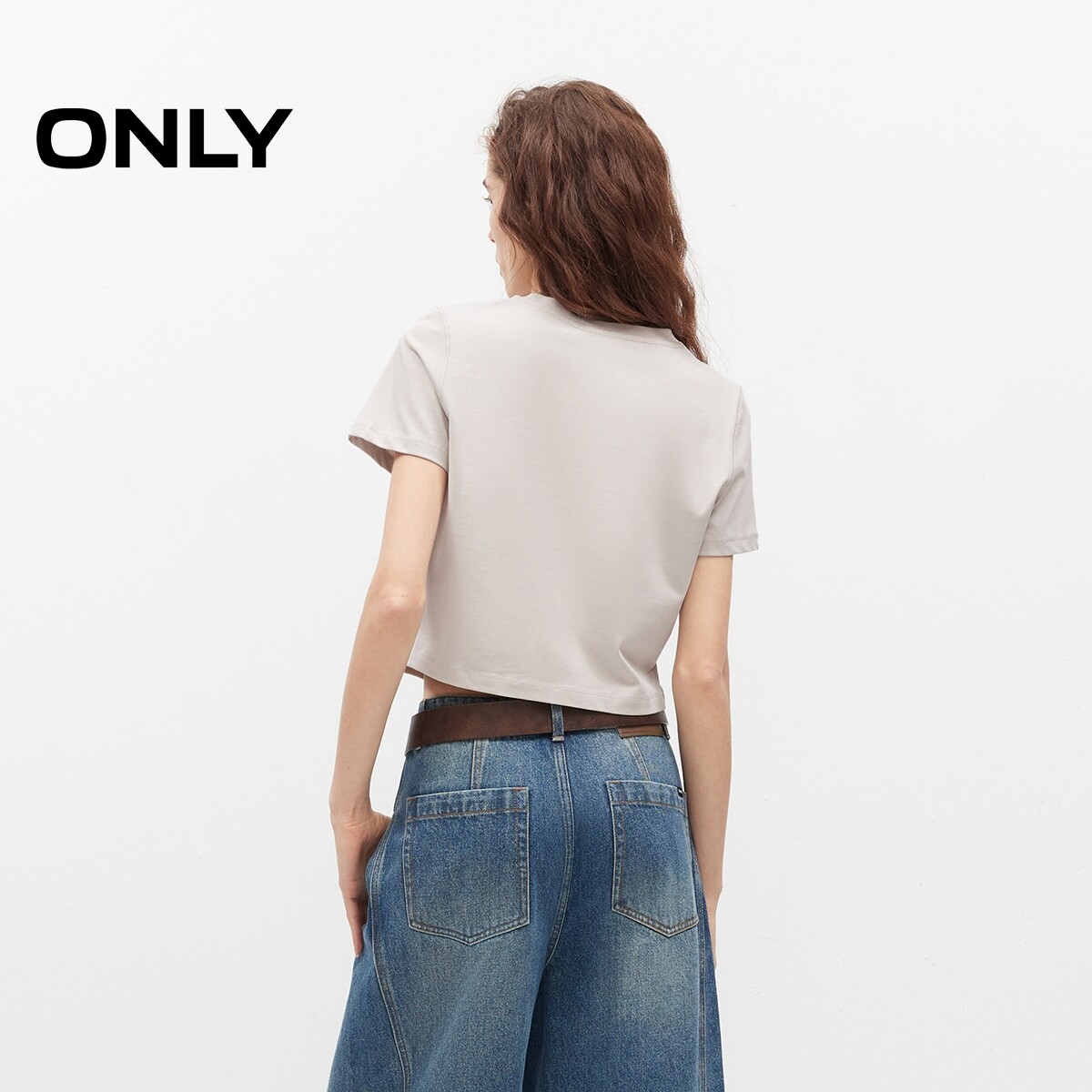 抽象太阳图案烫金印花正肩上衣T恤女 纯棉个性 ONLY2026夏季 新款
