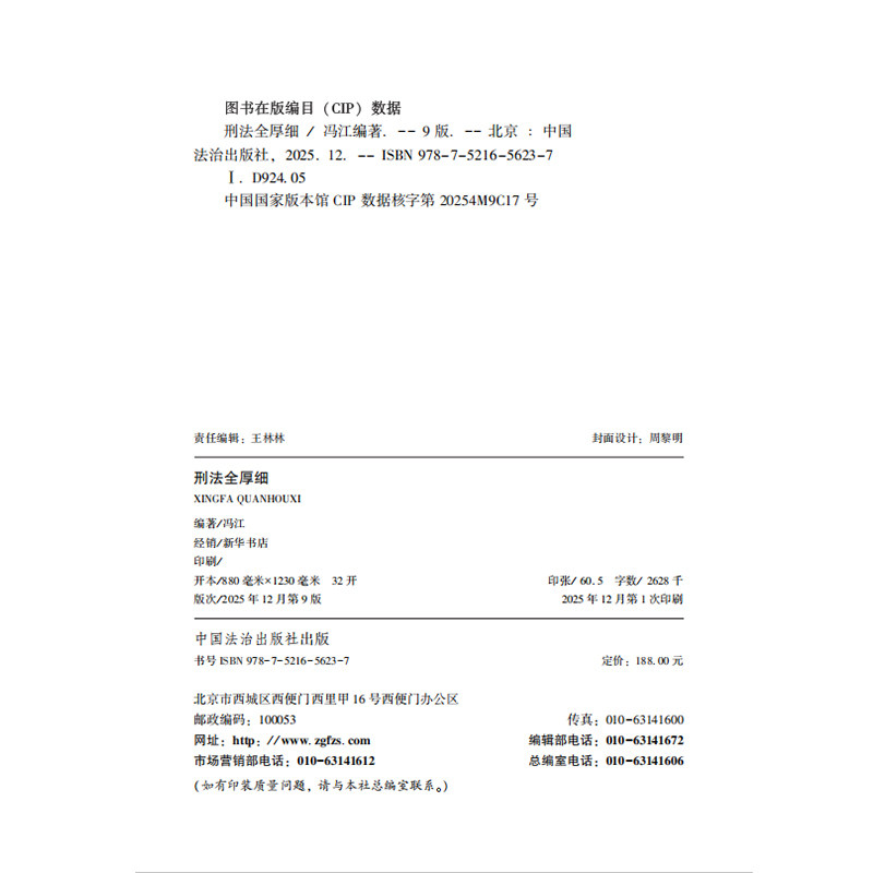 第九版 冯江编著 全新修订正版 中国法治出版 刑法全厚细 刑事刑法工具书司法解释案例注释实用办案一本通法律书籍 社 2026新版