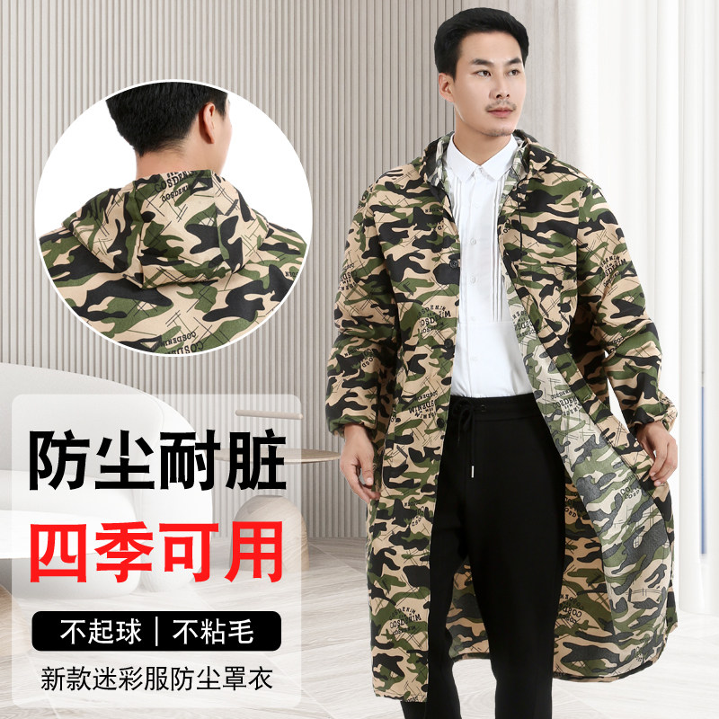 1米2加长过膝款 蓝大褂仓库搬运工耐磨衣服劳保工作服连帽大褂罩衣