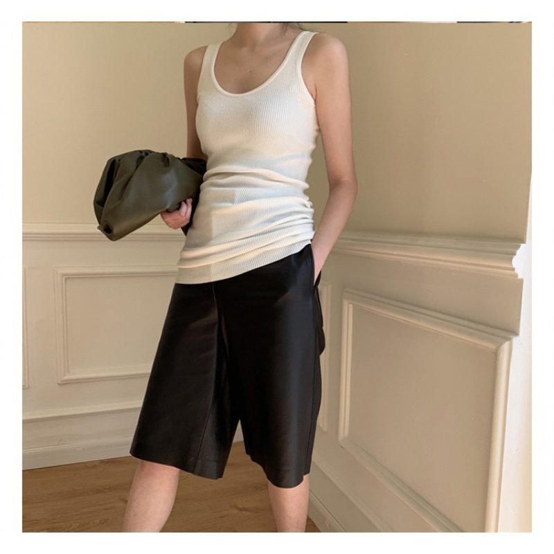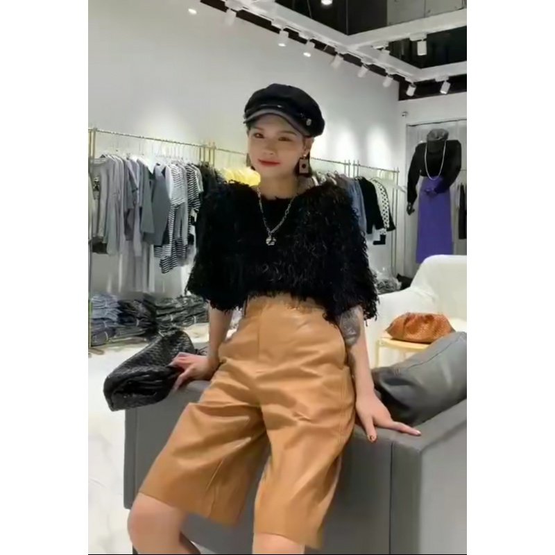 休闲五分裤 秋冬款 女中高腰直筒显瘦皮裤 阔腿绵羊皮真皮皮裤 潮 新款