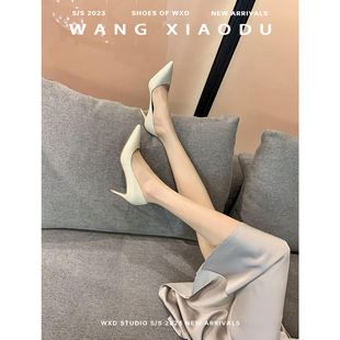 王小毒 新款 女明星驾到 女细跟婚鞋 真皮单鞋 太女人尖头高跟鞋