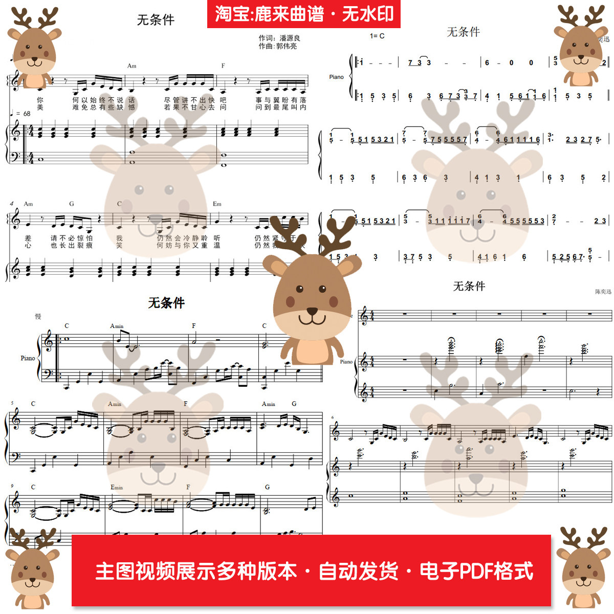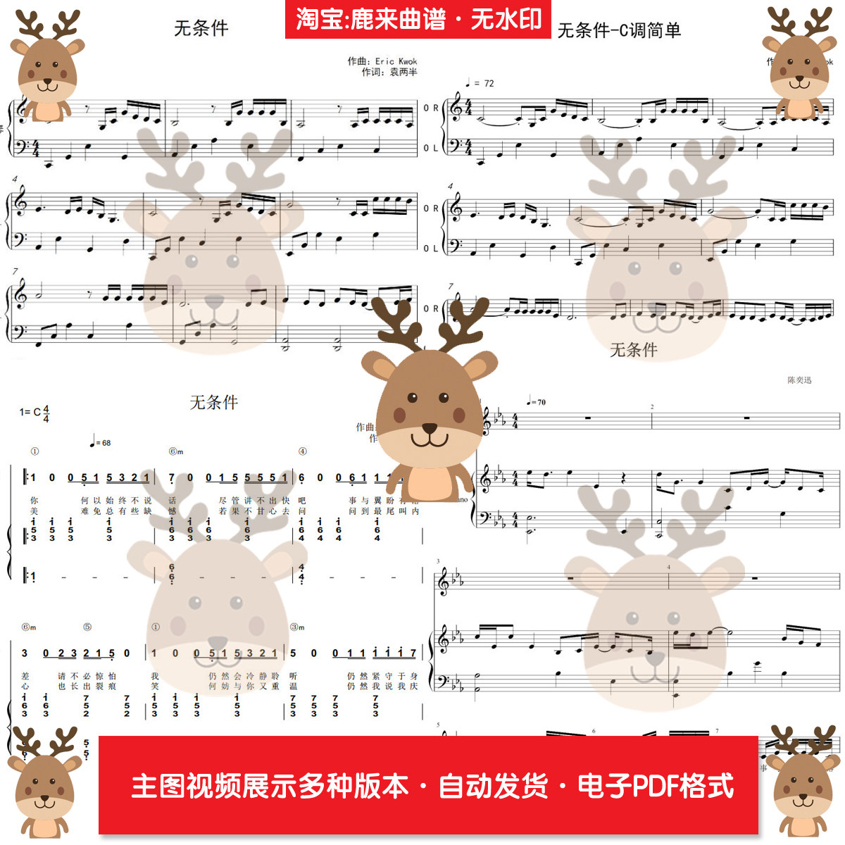 本 钢琴谱 弹唱谱 无条件 PDF电子格式 共12个版 钢琴简谱 陈奕迅