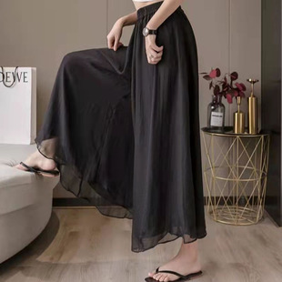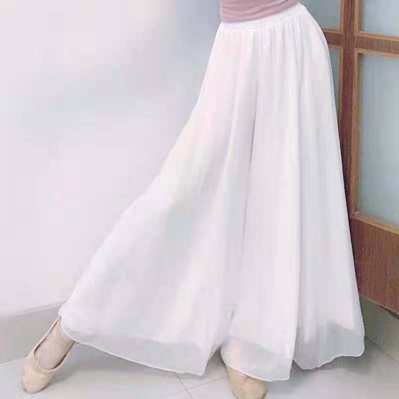女高腰垂感仙气飘逸舞蹈裤 双层雪纺阔腿裤 裙宽松瑜伽裤 超大摆