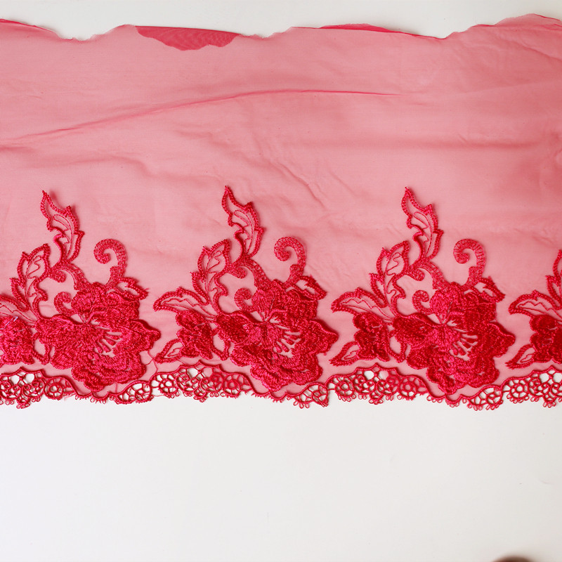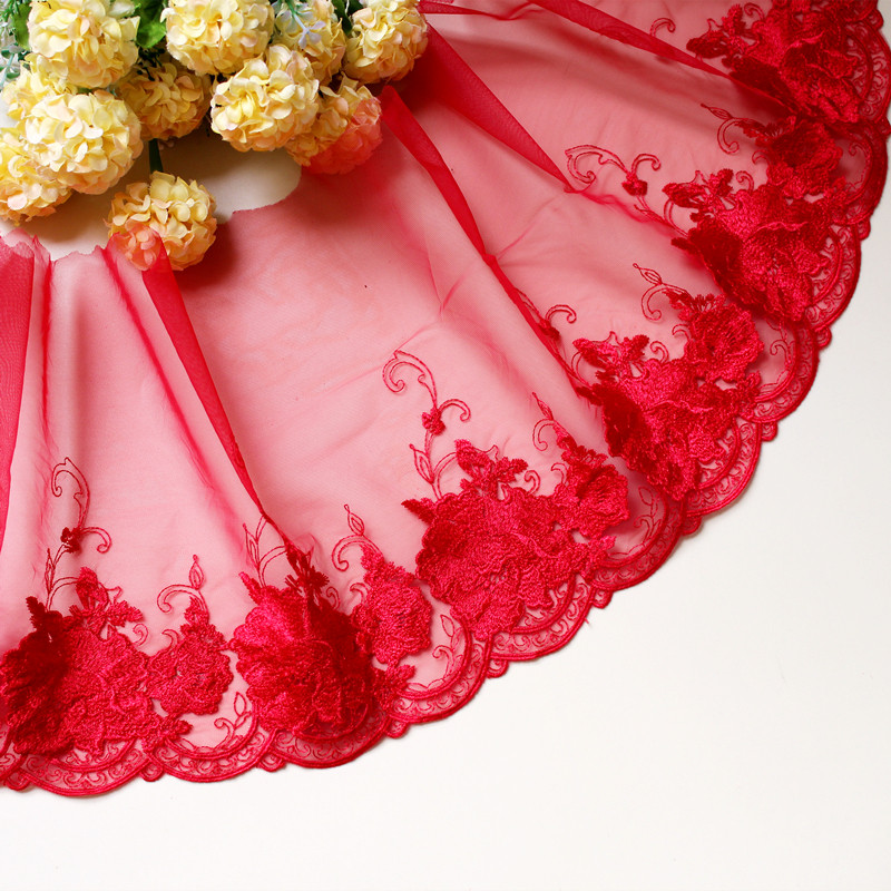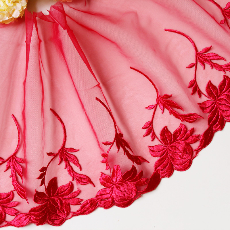 4.5厘米酒红色棉布刺绣纯棉娃衣花边辅料裙子下摆裤 子加宽加长边