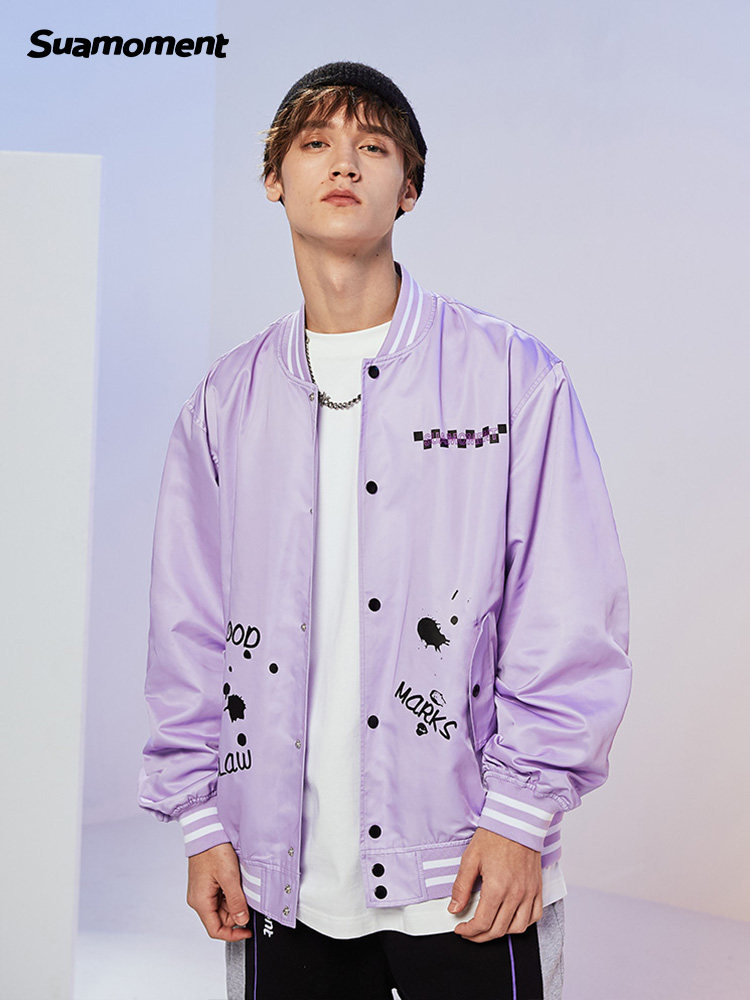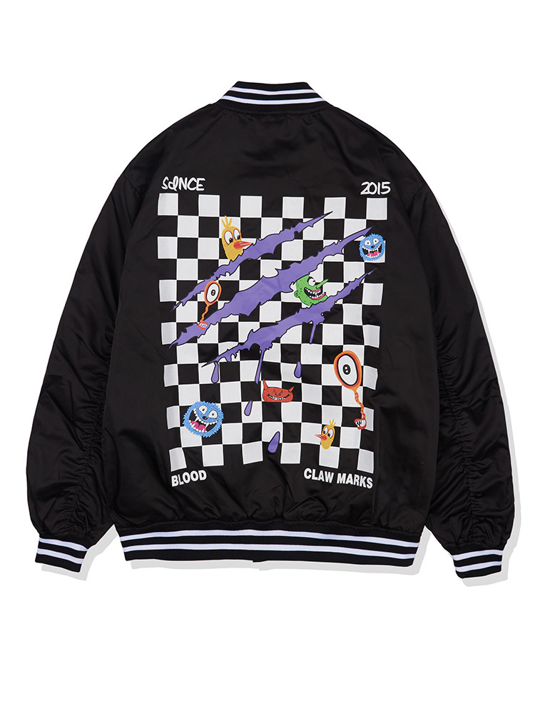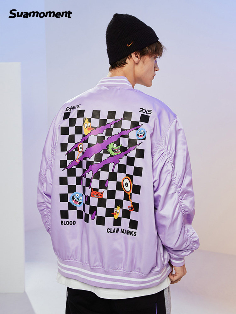 新品 SuaMoment 抓痕血爪棋盘格棒球服男女国潮牌休闲夹克2021春季