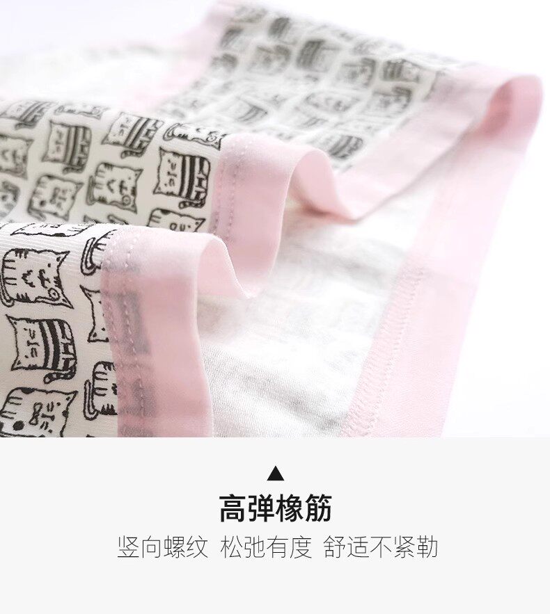 头 中腰简约可爱少女学生棉质面料透气小平角短裤 3条装 蝶安芬内裤
