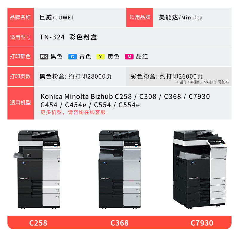 C308 C258 C368 C7930墨粉盒C454 TN512墨盒硒鼓 适用柯尼卡美能达C454e C554碳粉柯美TN324 C554e粉盒Bizhub
