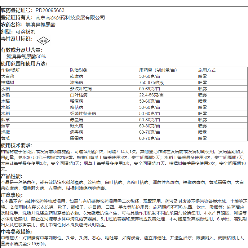 农爱多50%氯溴异氰尿酸真菌细菌黄瓜霜霉软腐病毒病农药杀菌剂20g