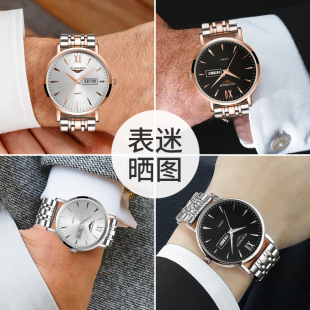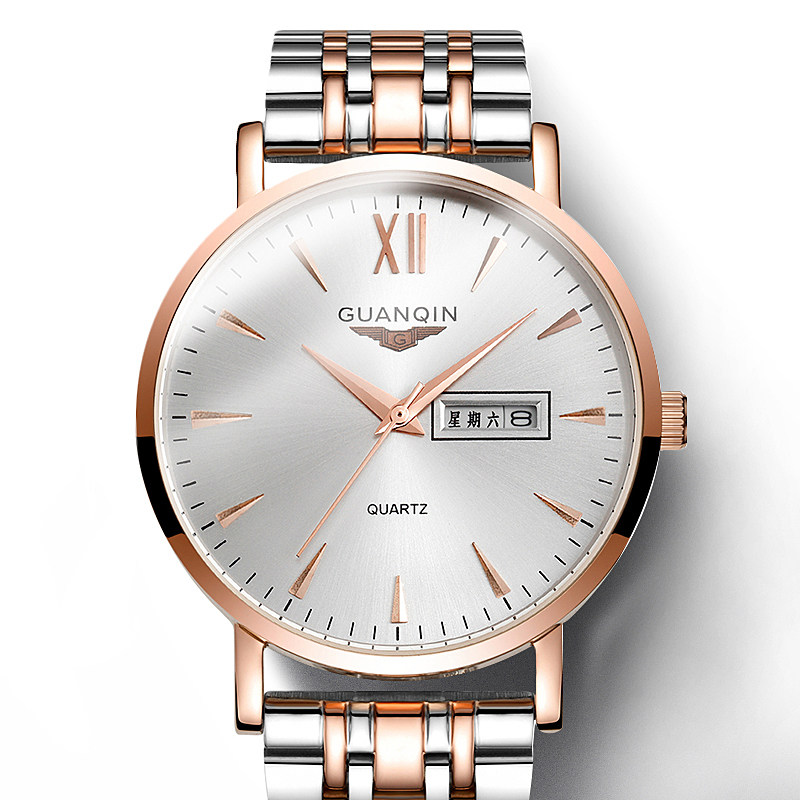 新款 冠琴手表男石英表简约潮流精钢男表商务休闲男士 手表防水时尚