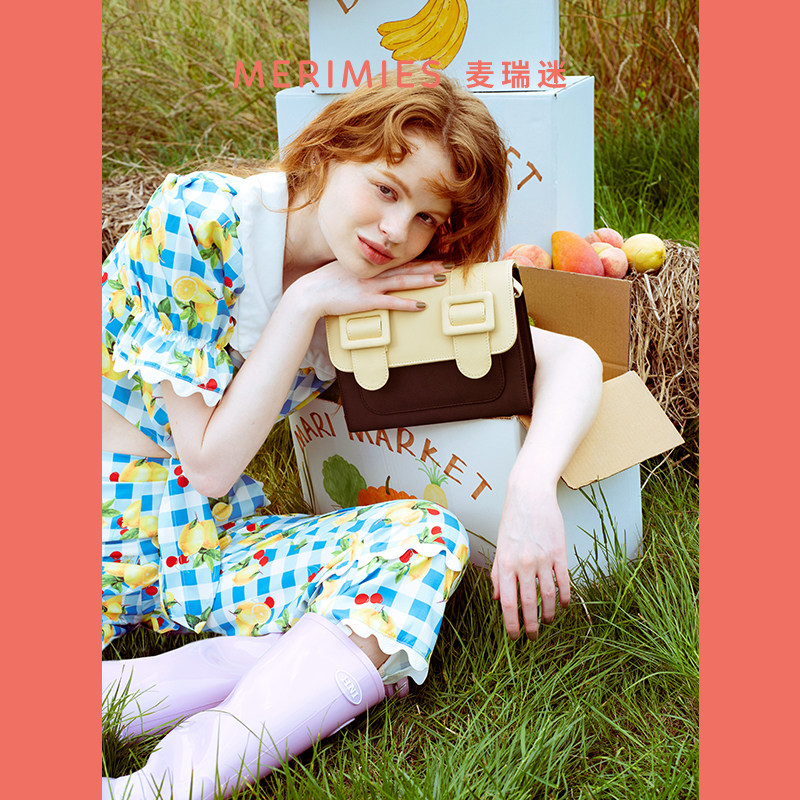 merimies麦瑞迷官方 单肩邮差包斜挎包女包包 泰国剑桥包M号拼色