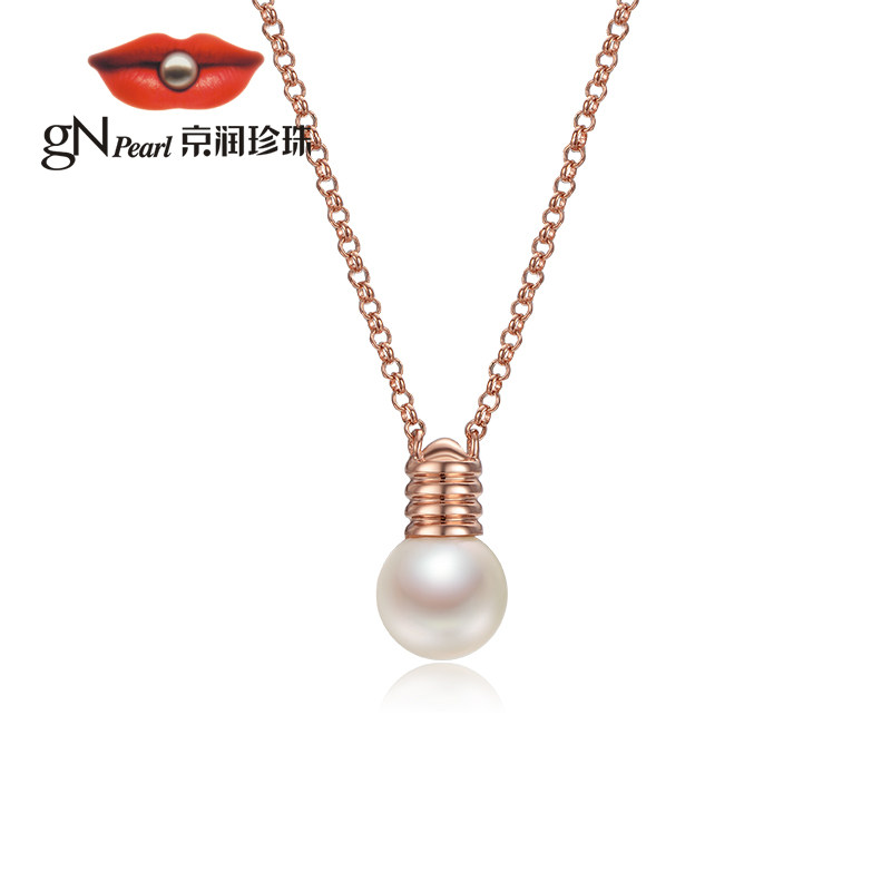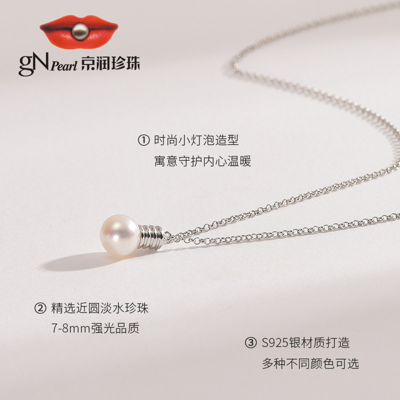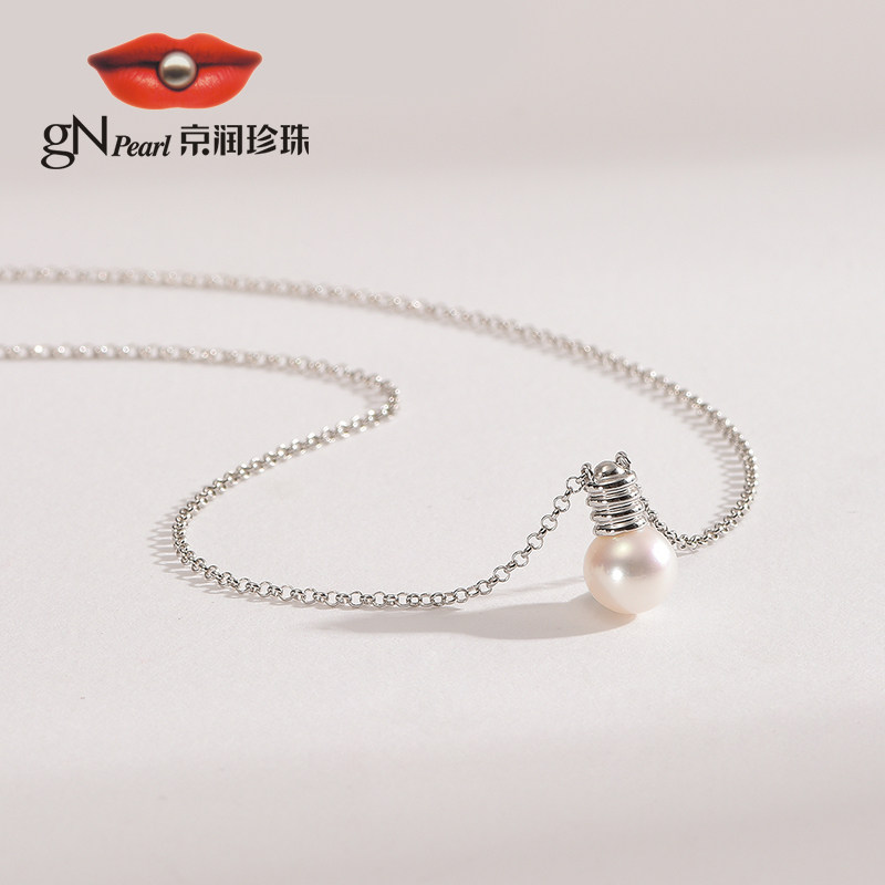 京润珍珠灯火灯泡系列7 8mm圆形925银白色淡水珍珠链牌项链D