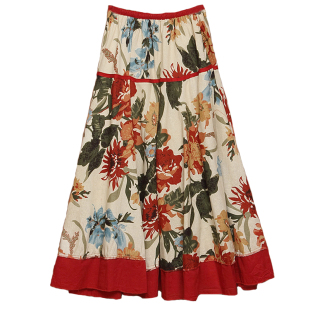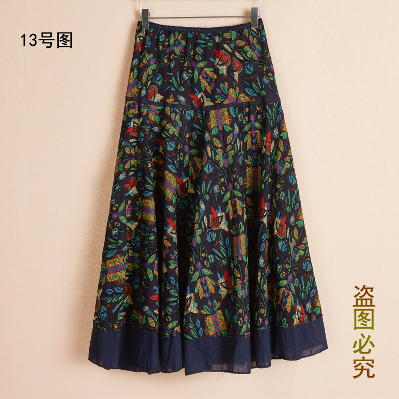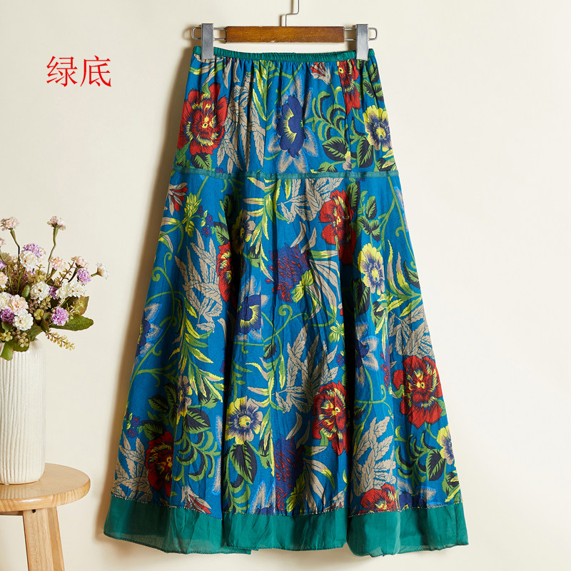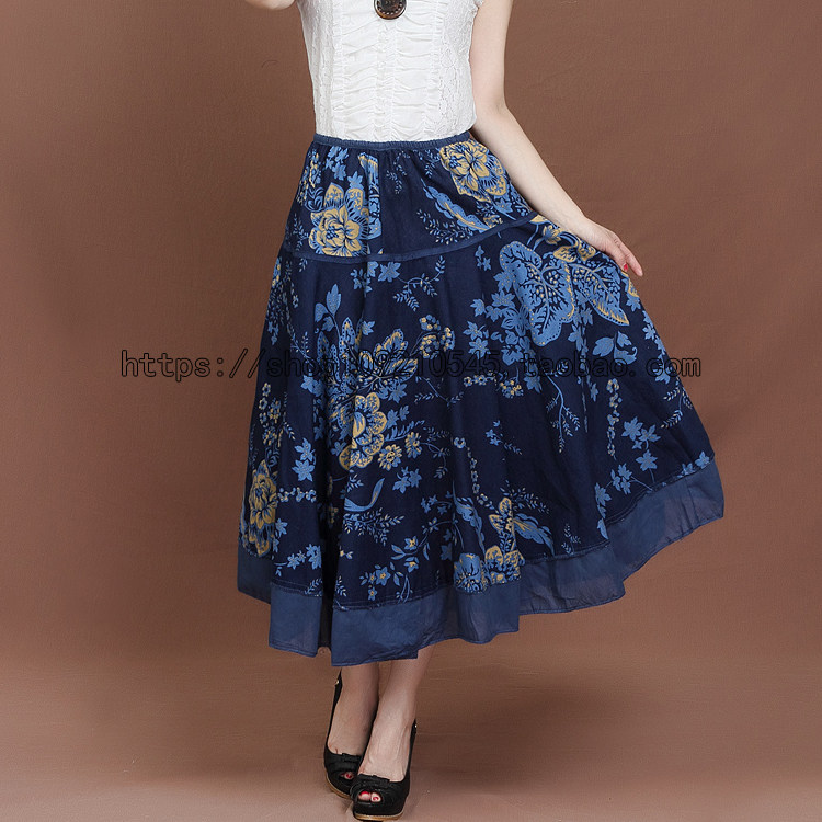 波西米亚棉麻长裙半身裙夏季 度假大摆沙滩裙印花民族风跳舞女裙子