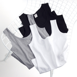 秋冬桑蚕丝绒感磨毛保暖打底衫 吊带带胸垫背心女士黑白色内搭上衣