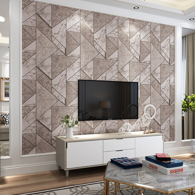 北欧灰色3D立体几何图形鹿皮绒墙纸客厅卧室电视背景墙壁纸高级感