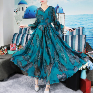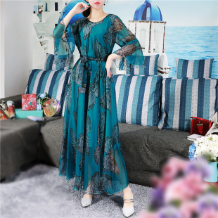 气质雪纺蝴蝶连衣裙遮肚沙滩裙海边裙子度假碎花仙女大码 夏季 新款