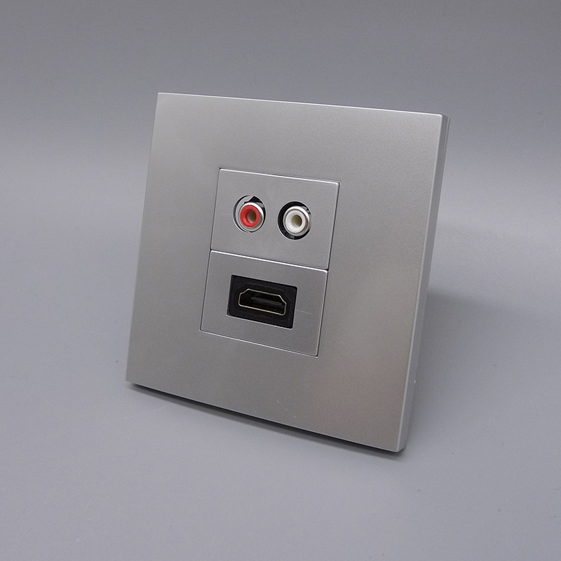 银灰色86型HDMI弯头加音频免焊高清2.0音频免焊接线莲花音频面板